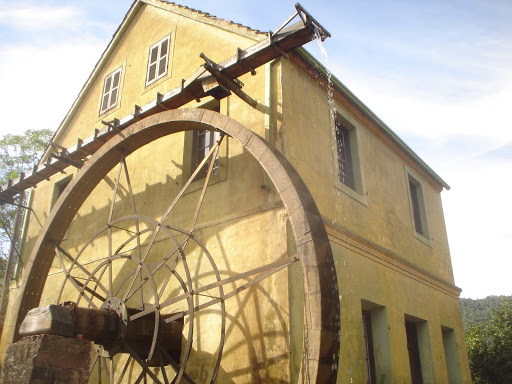 Os moinhos que movimentavam mecanismos para a produção de grãos, foram os precursores das modernas turbinas das hidrelétricas no uso da força da água em queda. Em Picada Café no Parque Jorge Kuhn, há uma bela amostra desse pioneirismo, no prédio hoje ocupado pela sede da Rota Romântica. Ao subir ou descer a serra pela BR116, não custa dar uma paradinha para apreciar esta pioneira obra de engenharia… Veja abaixo sua localização…