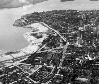 São cinquenta anos entre uma imagem e outra…. A turma do Almanaque Gaúcho – Ricardo Chaves nos presenteou com a imagem em P&B da nossa capital no fim dos anos 50, feitas pelo fotógrafo José Abraham. No blog http://wp.clicrbs.com.br/almanaquegaucho/2012/02/03/porto-alegre-fim-dos-50/?topo=13,1,1,,,13 foram postadas informações sobre alguns pontos de referência que aparecem na foto antiga, e como eles estão hoje. A imagem atual não é uma foto aérea do mesmo local, mas uma simulação usando o Google Earth, com alguns prédios modelados em 3D. Talvez não esteja perfeito, mas mostra claramente o que mudou nestes 60 anos. O contraste entre uma romântica e calma cidade repleta de residências e árvores nos bairros centrais, e uma agitada metrópole cortada por avenidas e prédios retilíneos, é mais do que evidente. As casas e as água do Guaíba pareciam ter a época, uma relação mais íntima do que a de hoje, afastados por muros e prédios, com seus estacionamentos e afastamentos. Em um movimento contrário ao que aconteceu com os namorados, que de um passado de controle rígido de zelosos e moralistas pais, evoluiu para uma intimidade fácil, e liberdades antes impensáveis. Outros tempos em comportamento, outros tempos em ambiente urbano. A Porto Alegre da foto talvez não volte mais, pelo menos na realidade real. Mas quem sabe com a tecnologia que avança não podemos vislumbrar com a realidade virtual, a cidade de ontem? Trazer de novo a vida os prédios e ruas por onde andaram nossos antepassados? Talvez isso seja mais fácil do que voltar aos valores de outrora….
