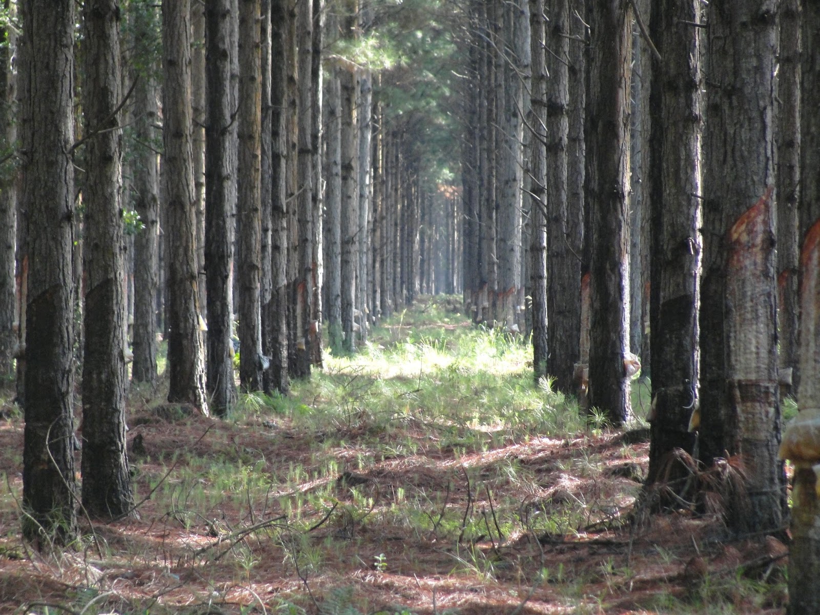 Longas fileiras de árvores plantadas em linha fornecem um espetáculo natural com toques de artificialidade… É assim nas proximidades de Pinhal e Cidreira, litoral norte gaúcho. Notícia por conta de um incêndio nos últimos dias, a cultura do pinus elliotti se iniciou em toda esta região nos idos dos anos 70. A madeira desta espécie além de servir para a produção de celulose, base para a fabricação do papel, também fornece uma seiva formada por breu e terebentina, largamente utilizadas como matérias-primas em diversos ramos da indústria química. Os incentivos a este cultivo que perduraram por duas décadas ajudaram a espalhar esta espécie exótica ao nosso ambiente, até mesmo para as áreas urbanas do litoral. Suas finas folhas que ao cair reprimem o crescimento de outras espécies adquirem dourados tons, formando uma visão curiosa deste tipo de floresta. Mas é a imensidão destes geométricos cultivos a beira de estradas que levam a mar, que mostram que as arquiteturas naturais e humanas podem se somar, para diversos fins. Inclusive o de enfeitar uma viagem com o encantamento de suas belas paisagens…