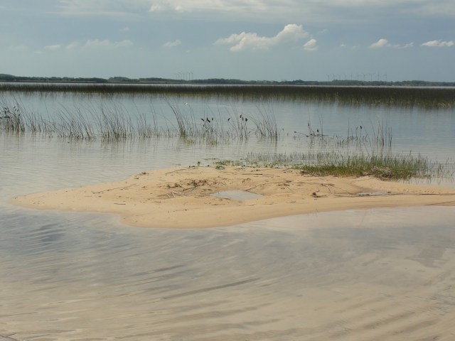 Águas calmas e límpidas no litoral gaúcho, do mar é que não são. Salvo raras exceções. Quem conhece esta nossa região, sabe que somente nas inúmeras lagoas que seguidamente damos a devida atenção por aqui, é que se pode fugir da agitação aquática. Mas a transparência não é em qualquer lugar que se encontra, e é um diferencial da Lagoa do Bacopari em Mostardas. O fundo com areia semelhante à das praias e o fato de ser formada por uma vertente e não por um rio, possibilita a clareza que permite até mesmo a visualização de pequenos peixes. O modesto balneário que a acompanha e vem crescendo, recebe todo ano veranistas dispostos a vivenciar uma experiência longe das ondas. Uma fileira de dunas, que separam por 4 Km esta porção de água doce do mar nesta região servem, junto com uma fileira de cataventos, como pano de fundo a uma paisagem exuberante. Que convida aos milhares que se deslocaram em extensos comboios aos grandes cetros urbanos praianos, a ampliar o seu olhar sobre um lugar que pode mais. Muito mais….