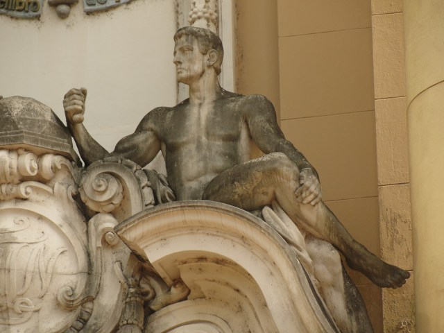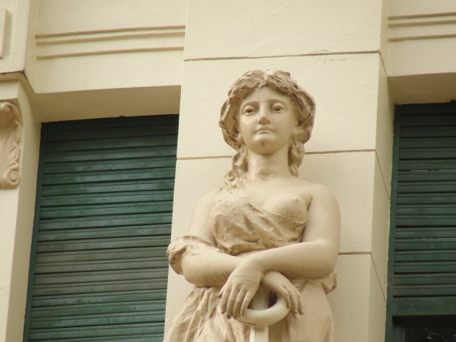 Seguindo nas homenagens a aniversariante, achamos estas provocações a céu aberto e olhos de todos. Pois foi com uma observação mais atenta, achamos alguns “atentados” à descência! Pois é… Não é de hoje que a exposição de corpos esbeltos e sem roupa atraia atenção de alguns, mesmo com a contrariedade e preocupação de outros. E, é claro, não é exclusividade da nossa capital. No centro histórico de Porto Alegre há belos exemplos de homens e de mulheres em posições que mostram ao menos da cintura para cima, representados em estátuas ricamente esculpidas a enfeitar os prédios do Museu de Arte e de outros ocupados por empreendimentos comerciais. Uma beleza plástica que tenta concorrer com os milhares de corpos de todos os sexos que transitam na agitada correria diária, desta movimentada metrópole sulista. E que muitas vezes não conseguem perceber estes outros seres de pedra, eternos e imóveis vigilantes do passar dos dias…
