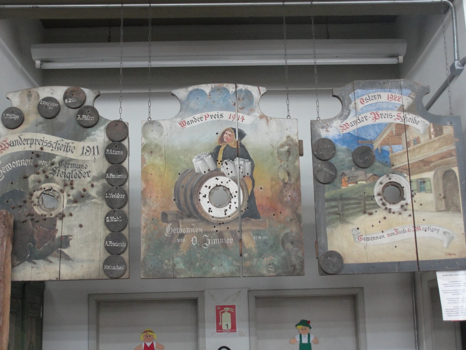 É no Museu Visconde de São Leopoldo que é possível conhecer os “alvos” desta interessante história. As sociedades de tiro das colônias germânicas do Rio Grande do Sul proliferaram no começo do século XX, principalmente devido à ascensão econômica dos imigrantes e seus descentes no fim do século anterior. Era uma forma de agregar as comunidades, não somente para uma prática esportiva, como também para se discutir o desenvolvimento da pátria-mãe, e da nova vida na América. E como é característico desta cultura, o capricho artístico está em toda a parte, até mesmo nas tábuas que levavam os precisos tiros em acirradas competições. E este colorido pode ser apreciado neste museu em São Leopoldo, acompanhado de muitos outros objetos que conta a história desta determinada gente. Os desenhos de muitos destes alvos, relembram cenas e personagens das terras que ficaram para trás na Europa, trazendo o sentimento de pertencimento a algo distinto do ambiente que passaram a viver no novo mundo. Em seu auge, até mesmo clubes femininos foram criados, para que as que vestiam saias pudessem igualmente e esportivamente, pegar em armas. Mas as guerras mundiais que se iniciaram no velho continente, com relevante participação alemã, acabaram respingando por aqui. E sob a pressão de desconfiados nacionalistas sul-brasileiros, as sociedades foram perdendo força, tendo em alguns casos, até mesmo bens confiscados e sedes lacradas. Muito se perdeu prejudicando o conhecimento completo desta rica história, mas o pouco que ficou ajuda a que ela não caia no esquecimento, e quem sabe possa ser recontada com a atenção que merece pela importância que teve…