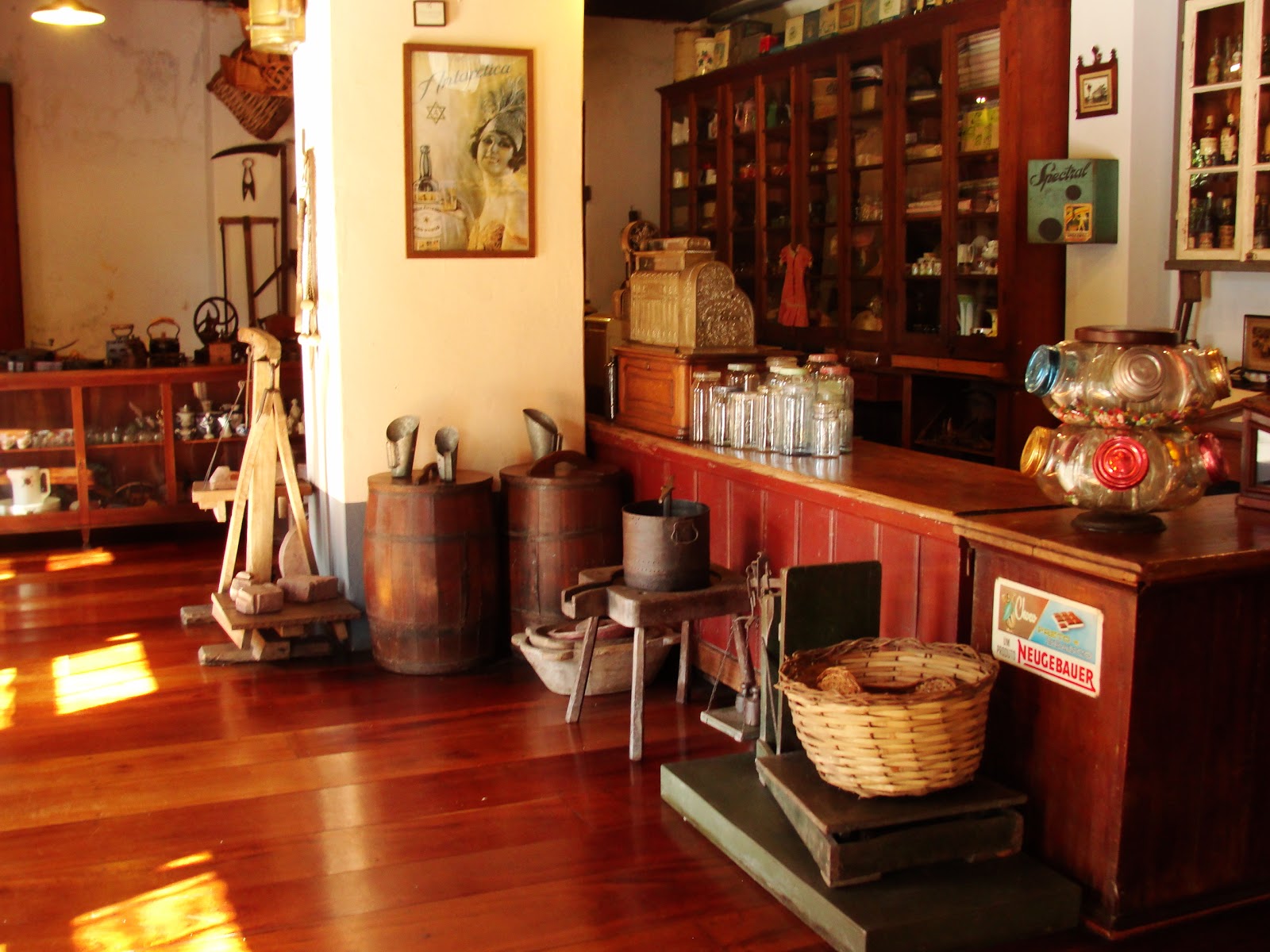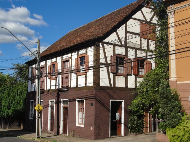 Que fica no bairro Hamburgo Velho de Novo Hamburgo, mas a tradução do antigo nome que está no título é Montanha de Hamburgo… A histórica Casa Schmitt-Presser erguida no século XIX foi por anos a fio um marco na região, sendo muito mais que uma loja. Situada no entroncamento de dois importantes caminhos da colônia alemã, era também ponto de encontro, banco, local de informações e reuniões. Era ali que se vendiam e compravam os mais variados produtos, em uma troca de valores entre colonos, ou destes com tropeiros que faziam do lugar ponto de parado na sua jornada, entre o sul e centro do Brasil. E com o comércio intenso veio o crescimento e desenvolvimento de uma comunidade pujante que com o tempo foi superando até mesmo a sede da colônia. A chegada do trem e sua nova estação porém deslocou o “centro” para longe da casa e das igrejas, do que passou a ser um bairro onde a história se preservou. O prédio hoje é um museu, em que no andar de baixo o balcão antigo, e as prateleiras cheias, nos levam a mergulhar neste passado imaginando a vida econômica que girava por trás daquelas altas portas. O andar de cima mostra mais, mas parte dele está em manutenção, e ainda pode esperar um pouco para aparecer por aqui…