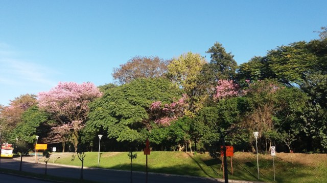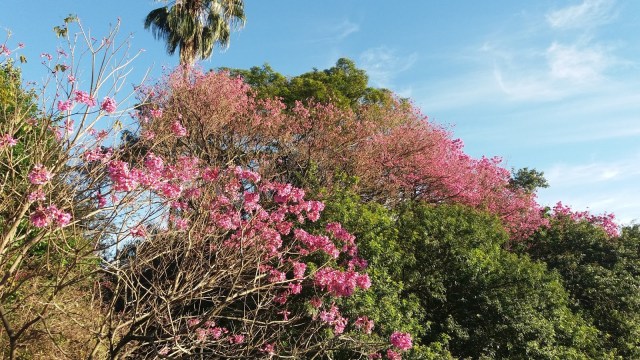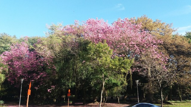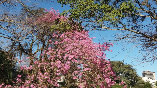 No Parque Moinhos de Vento os ipês rosa explodiram seus galhos em muitas flores que dão o tom de uma primavera fora de hora. As temperaturas altas de boa parte de Julho e deste começo de Agosto favoreceram a este espetáculo antecipado, mas magnífico. Há mais delas espalhadas não só pela capital gaúcha como em muitas outras cidades do interior. Os que passaram por aqui a passeio em busca do frio, e que se decepcionaram com o calor podem levar outro tipo de lembrança na mala. Ou nas selfies…