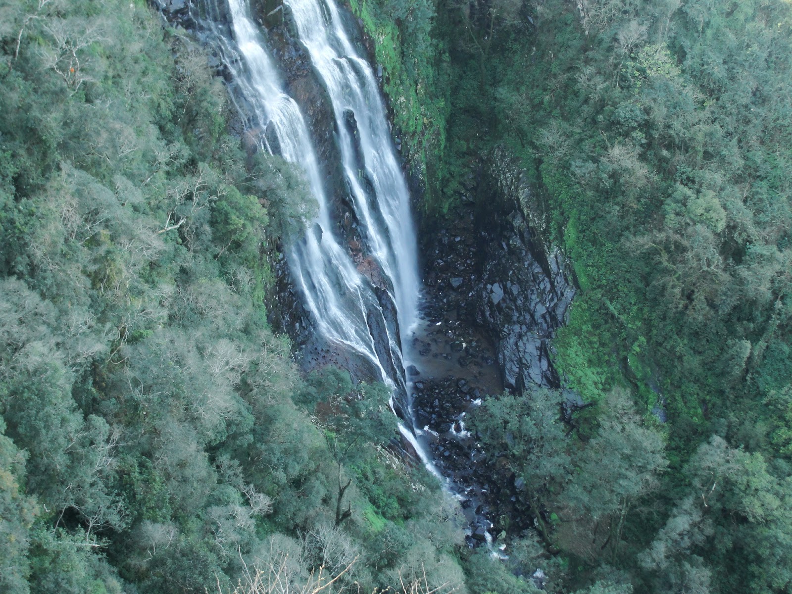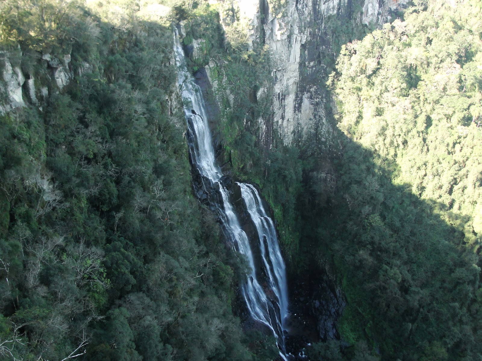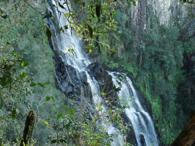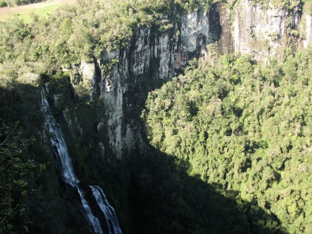 Que fica em Veranópolis na serra gaúcha. Uma esbelta queda sobre um paredão vertical que pode ser vislumbrada em toda a sua plenitude, a partir de um mirante que avança sobre o vale. A sensação de medo que se tem ao se olhar para fundo dele, é tão forte quanto à emoção de ver e escutar a água despencando sobre rochas escuras. O lugar fica em uma propriedade particular, onde para entrar basta abrir um portão, tomando o cuidado de fechá-lo para que as vacas não fujam… A apenas 6 km de distância da praça central da cidade, sendo 2 de estrada de chão, o lugar é mais uma grata surpresa da nossa natureza exuberante. O entorno da vista com a sombra de suas árvores completa um convidativo ambiente para momentos de paz e contemplação. Em mais um lugar que pode muito mais…
