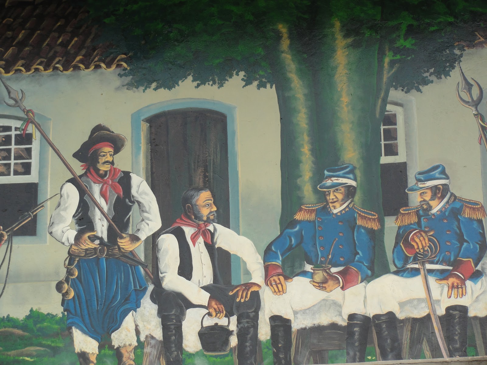Foi embaixo desta árvore, que Bento Gonçalves seus comandados definiram as últimas ações a serem executadas na madrugada de 20 de Setembro de 1835. Em frente à casa de Gomes Jardim em Guaíba, os revolucionários planejaram a tomada de Porto Alegre dando início a festejada Revolução Farroupilha. A guerra contra as forças leais ao império duraria longos dez anos e deixaria um rastro de sangue, sequelas, mas sonhos. E nem todos frustrados. A paz selada que muitos interpretam como derrota, semeou os ventos da República que tomaria conta do país 4 décadas depois. Além de seguir sendo lembrada como um exemplo de coragem e ousadia dos que queriam mais. Dos que lutaram por aquilo que achavam justo. Os elementos culturais desta empreitada seguiram vivos através dos anos, sendo posteriormente incrementados e cultivados principalmente no século XX, para enaltecer a figura do gaúcho. E as raízes desta gente se confundam nas celebrações atuais, com o sonho de criação de uma nação que insiste em existir. Ao menos em seus símbolos….