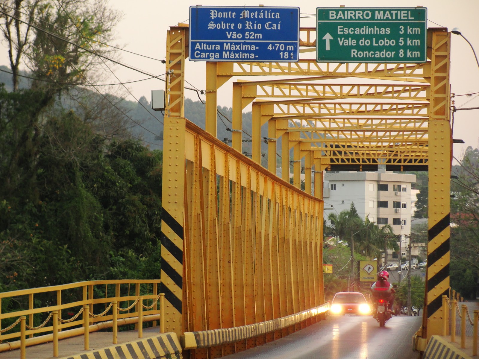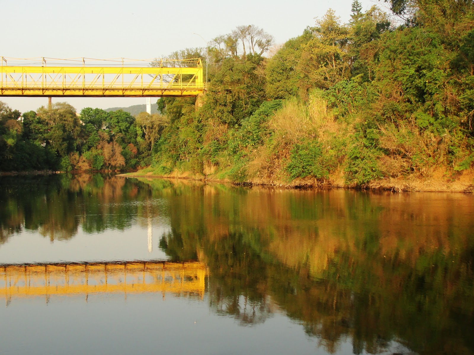 Sobre o Rio Caí com sua característica cor amarela, esta ponte trazida da Bélgica e montada ali há mais de cem anos, merece uma visita. Ela liga duas metades desta bela cidade de uma das regiões de melhor qualidade de vida de todo o sul. Por sua estrutura metálica os veículos se intercalam em sua passagem, pois ela possui apenas uma via. Já os pedestres tem um caminho lateral, onde podem apreciar de altura significativa, o manso fluir das águas do rio. Mas é de baixo, a beira da água em uma “praia” de pedras arredondadas, que se pode apreciar toda a beleza da sua forma, harmonicamente encaixada na paisagem do vale. A cidade colonizada por imigrantes germânicos e as paisagens da região convidam a um passeio que pode incluir mais lugares, além da ponte. Lugares que tu sabes que mostramos e mostraremos pra ti, assim como muitas outras pontes históricas espalhadas por aí…