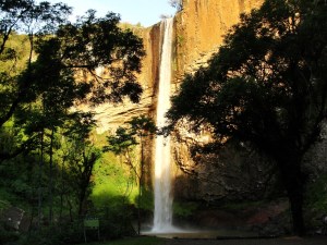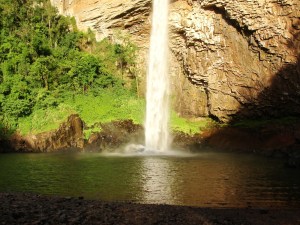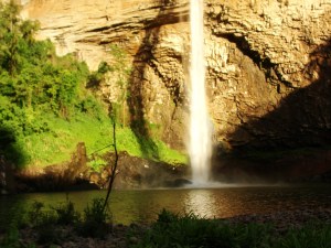É difícil colocar outro adjetivo a esta queda de altura considerável com um paredão com formação peculiar. E as cores que surgem com a luz do final de tarde, são tão belas quanto à queda em si e a curvilínea sombra formada na cavidade. O lago abaixo dela é amplo e propício para o banho, mas para acessar o local é preciso pagar entrada de R$ 8 por pessoa, mais R$ 13 para o carro, que pode chegar até a beira da água. Quem preferir pode entrar a pé, pois a caminhada é curta. Da pequena praia de pedras arredondadas, é possível além de admirar toda a sua grandiosidade, ouvir o ruído diferente da queda ao se chocar contra as pedras. A região de Riozinho e da vizinha Rolante guarda ainda outras belas surpresas como a Cascata das Andorinhas, e as belas paisagens desta que é a porção inicial do Vale do Rio dos Sinos. Os 12 quilômetros de estrada de chão a serem enfrentados pelo viajante, estão recheados delas, incluindo uma vista distante da cascata, em mais um lugar incrível que tu não podes deixar de conhecer…