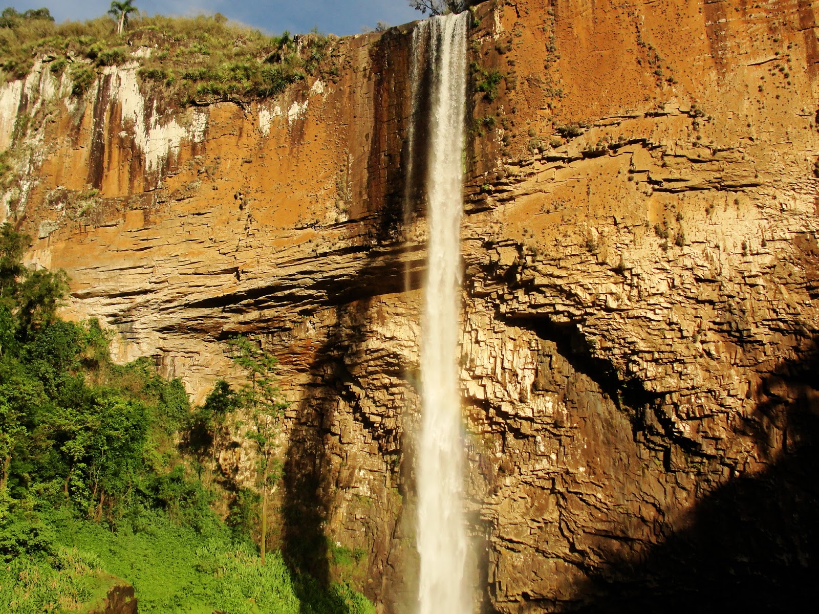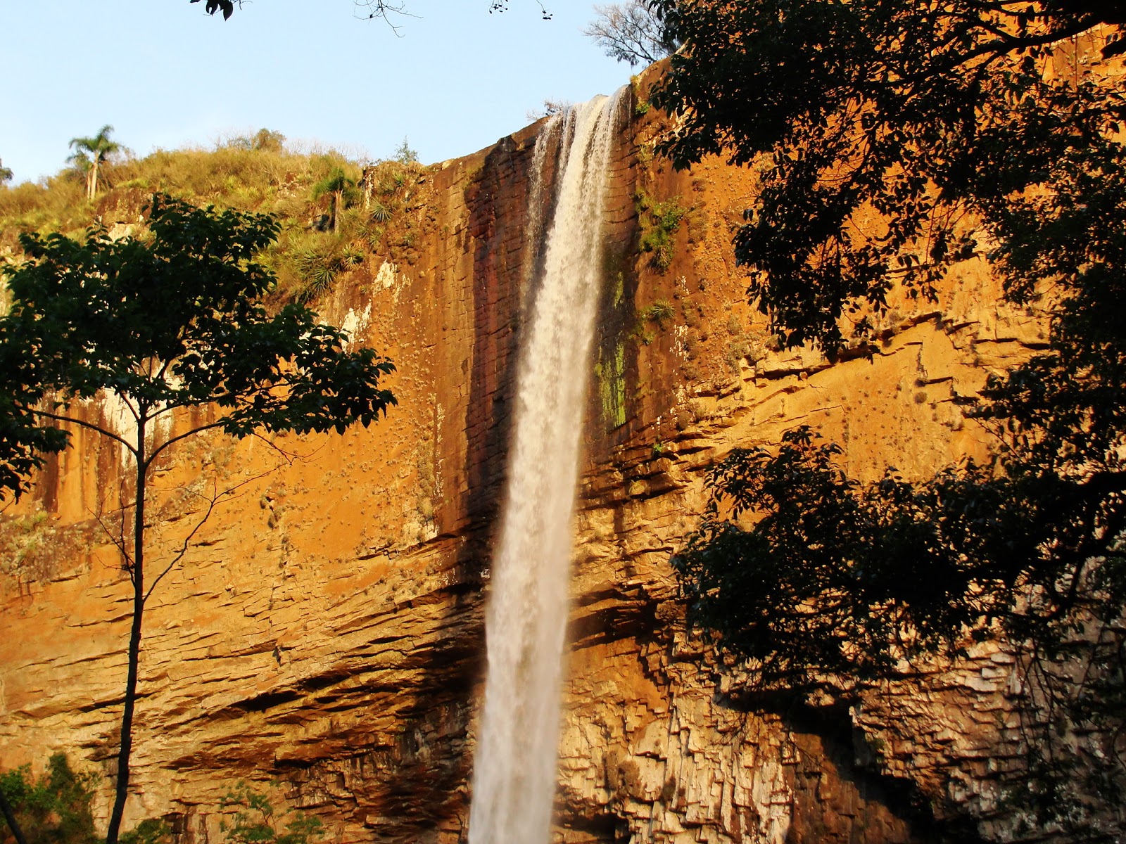 É difícil colocar outro adjetivo a esta queda de altura considerável com um paredão com formação peculiar. E as cores que surgem com a luz do final de tarde, são tão belas quanto à queda em si e a curvilínea sombra formada na cavidade. O lago abaixo dela é amplo e propício para o banho, mas para acessar o local é preciso pagar entrada de R$ 8 por pessoa, mais R$ 13 para o carro, que pode chegar até a beira da água. Quem preferir pode entrar a pé, pois a caminhada é curta. Da pequena praia de pedras arredondadas, é possível além de admirar toda a sua grandiosidade, ouvir o ruído diferente da queda ao se chocar contra as pedras. A região de Riozinho e da vizinha Rolante guarda ainda outras belas surpresas como a Cascata das Andorinhas, e as belas paisagens desta que é a porção inicial do Vale do Rio dos Sinos. Os 12 quilômetros de estrada de chão a serem enfrentados pelo viajante, estão recheados delas, incluindo uma vista distante da cascata, em mais um lugar incrível que tu não podes deixar de conhecer…