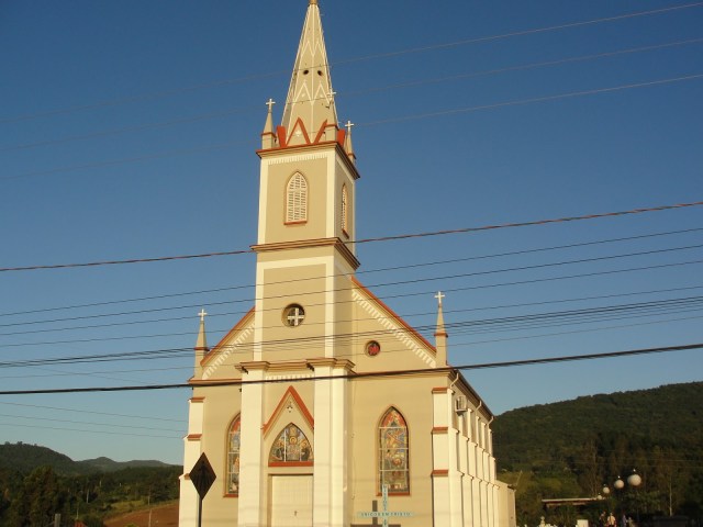 Em meio à beleza desta próspera região do sul, as torres de antigas e artísticas igrejas dão um ar especial ao panorama que se vislumbra, apenas chegando a uma rua mais alta. Afinal, em cidades com altos e baixos não é preciso se aventurar em morros da redondeza para apreciar uma vista interessante. Escolhemos 3, de 3 cidades diferentes, que observadas do lugar certo são flagradas encravadas em meio às montanhas do fundo do vale. A Igreja São José de São José do Hortêncio acima, a da Purificação em Bom Princípio e a dos Três Mártires Rio Grandenses em Presidente Lucena, nesta ordem logo abaixo, são como joias a enfeitar as pequenas e simpáticas comunidades que as abrigam e valorizam cada vez mais sua arquitetura. Os visitantes agradecem ao observá-las de longe, mas também ao chegar mais perto para apreciar seus ricos detalhes externos e internos. Que merecem outras postagens…