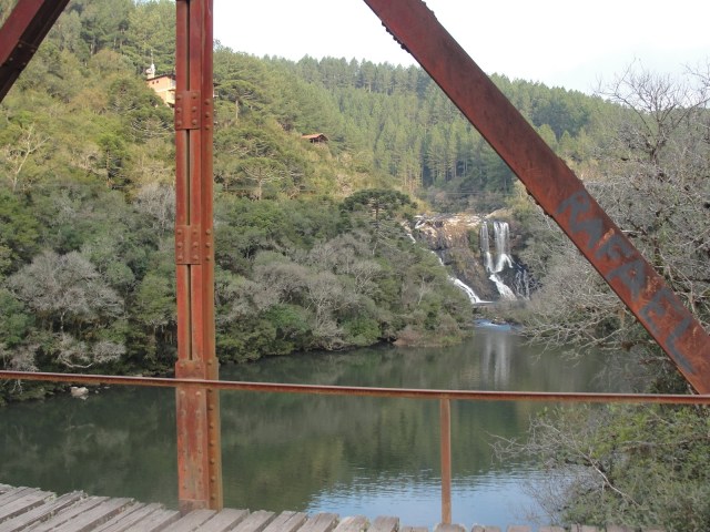 Em outros tempos, tropeiros e suas mulas e cargas, singravam campos entre o sul e o centro de um país ainda selvagem e carente de caminhos mais formais. Os passos, ou locais de passagem em um curso d, água, eram até o começo do século XX, a solução para a transposição de rios. E as agruras de se atravessar um fileira de homens e animais, muitas vezes acabava em perdas e tragédias. Talvez seja por isso que no começo do Rio Santa Cruz entre Canela e São Francisco de Paula, um lugar no limite entre a serra e os campos de cima da serra, tenha sido nomeado como Passo do Inferno. Mas a coragem desprendida na necessária travessia para dar seguimento o transporte e o comércio entre regiões distantes, resistiu por muitos anos ao temido ambiente. E a compensação por tantas perdas acabou por vir com a construção em 1933 e 1934, da ponte de ferro que trouxe a modernidade para a região. E o local escolhido acabou conjugando a praticidade com a beleza da cascata, facilmente avistada por os que atravessam a ainda firme estrutura. Um lugar incrível, que foi inclusive cenário de produções artísticas…