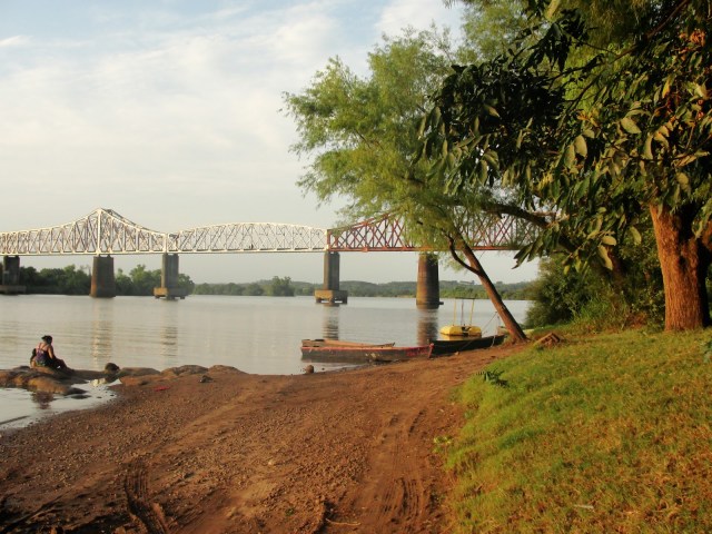 A ponte ferroviária sobre o Rio Taquari.