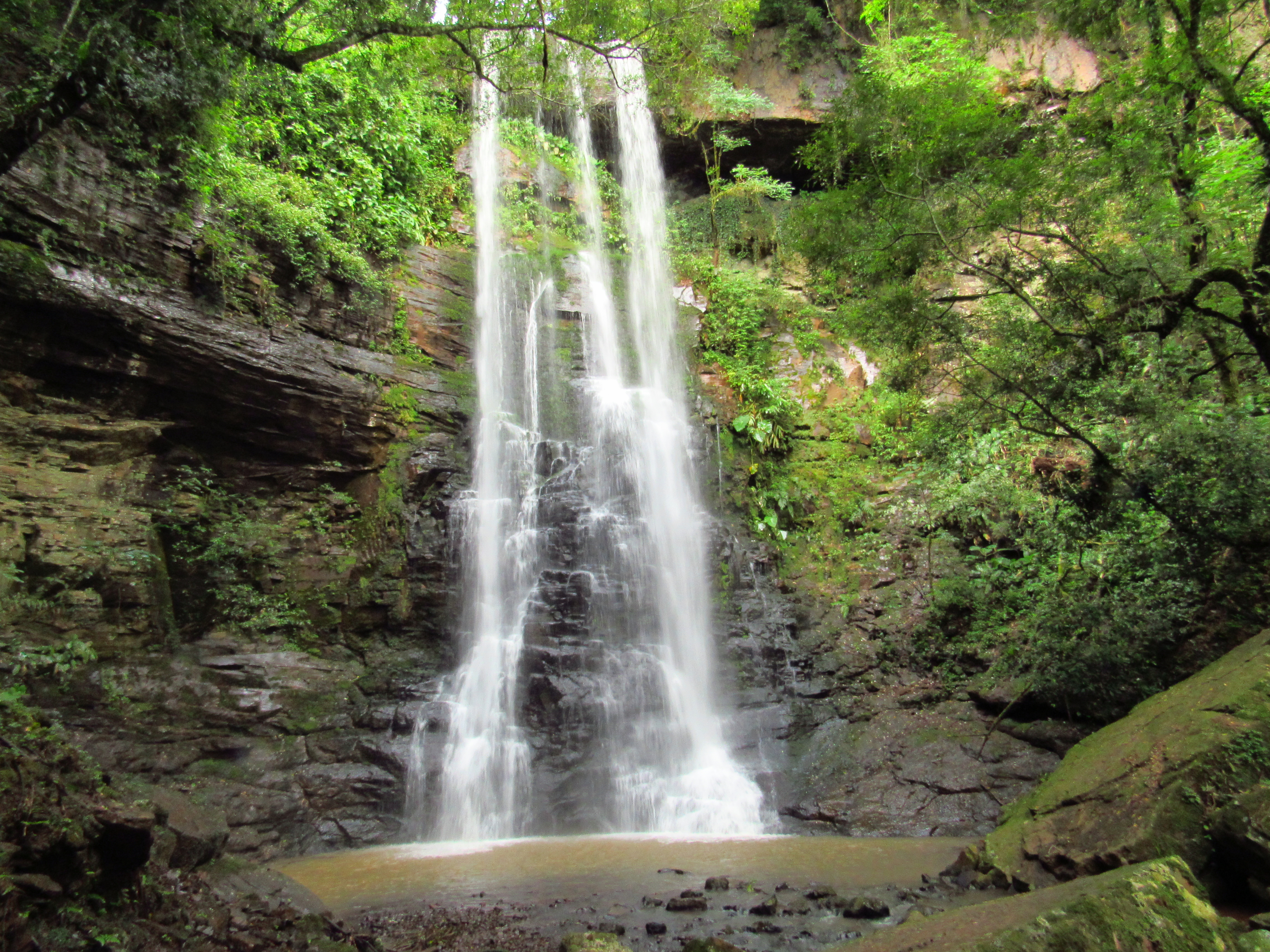 Esta fica em Alto Feliz/RS. E os bugres, nada mais eram que os índios que vagavam por serras e vales gaúchos antes da chegada dos europeus. Com avança da colonização, principalmente italiana e alemã em terras mais íngremes, os encontros (muitas vezes não pacíficos) entre estas duas civilizações acabaram sendo inevitáveis. Talvez seja por isso que quedas d´água com cavidades ou cavernas associadas, tenham sido denominadas como sendo destes sul-americanos primitivos. Esta, recebe as águas de um afluente do Rio Caí, que vai encontrá-lo mais de 5 km abaixo em Vale Real. Para chegar até ela é preciso andar 4 km de estrada de chão a partir de Alto Feliz, para depois se embrenhar em trilhas na mata nativa. A descida até a base convida a se ter cuidado com a declividade acentuada do terreno, mas a vista plena da queda compensa… Mas é lá no alto, sem a necessidade de uma caminhada mais extensa, que se pode acessar uma cavidade baixa em meio as pedras e se posicionar atrás da queda. A semelhança de outras cascatas de maior porte, como o Salto Ventoso de Farroupilha. O vislumbre deste fenômeno natural já vale a visita, para apreciar mais esta bela obra da natureza e imaginar a vida desta gente que já vagava por aqui há mais de duzentos anos…