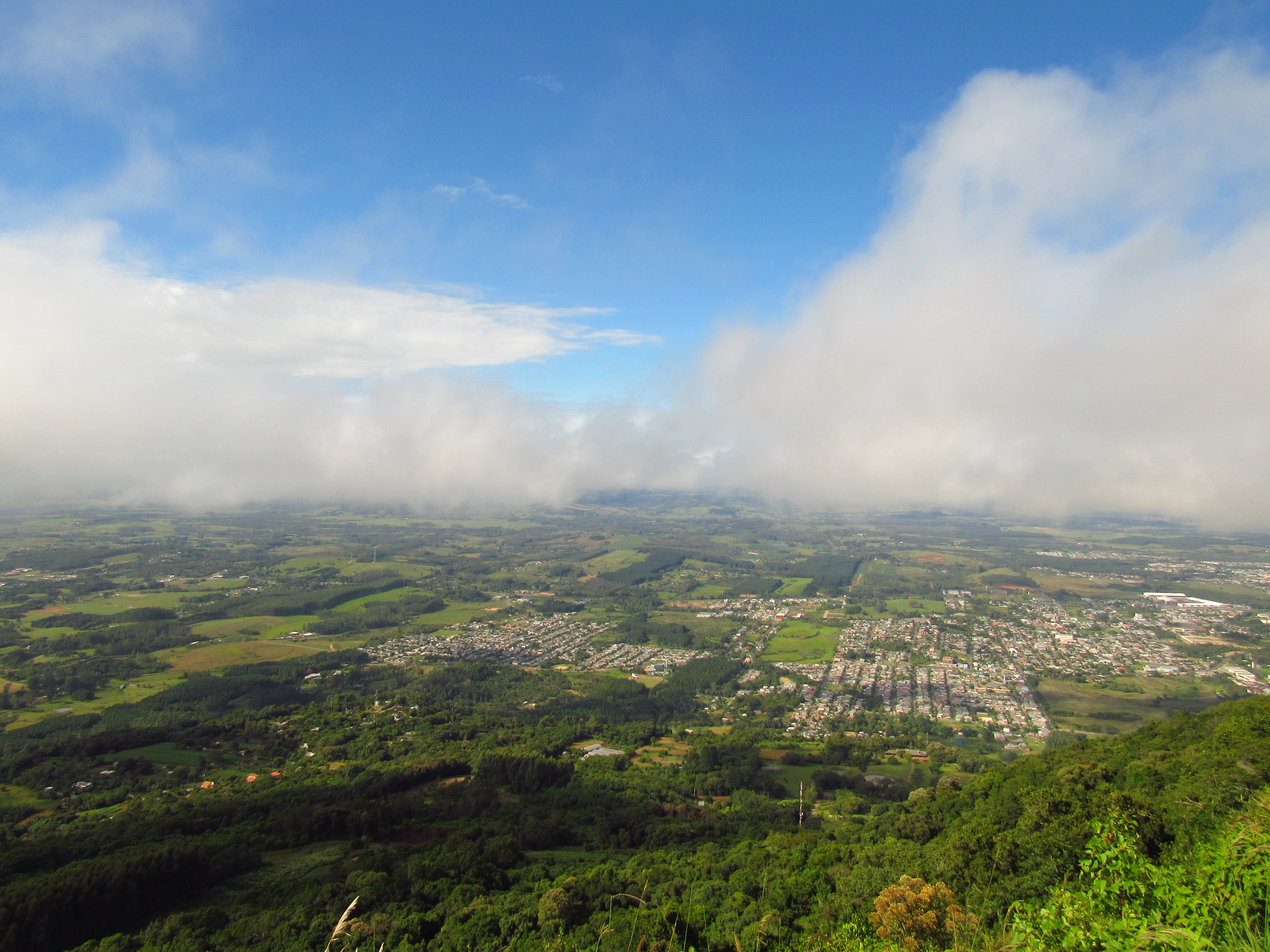As vezes é preciso subir no alto da montanha para enxergar longe. Ver as cidades como um emaranhado de construções branco-acinzentadas com pequenos toques de outras cores. Fazemos com alguma frequência isto pois belas vistas fazem parte do nosso conteúdo. O morro do Ferrabraz em Sapiranga é um destes lugares que vale a pena subir e voltar várias vezes. Com uma visão ampla de cidades importantes do Vale dos Sinos, como Novo Hamburgo e São Leopoldo, também se deslumbra lá de cima a subida da serra gaúcha. E com um pouco de atenção e informação podem ser identificadas cidades como Dois Irmãos e Morro Reuter encravadas em meio à verdejantes montanhas. Em dias mais nítidos, a vista alcança até mesmo a capital gaúcha por trás do Morro Sapucaia, e na direção do nascente, Taquara e o Vale do Paranhana. Nesta última visita o dia não estava totalmente claro, mas a natureza propiciou o espetáculo de luz e sombra de um dia com nuvens e um pouco de vento a soprá-las. O local que é cultuado pelos que se jogam a voar com os modernos Paraglider, também foi testemunha de uma história marcante que acabou de forma triste e que já comentamos aqui. E ainda falaremos novamente deste episódio de intolerância e conflito, como talvez muitos outros menores que acontecem lá embaixo. E que ficam distantes para quem os vê lá do alto…