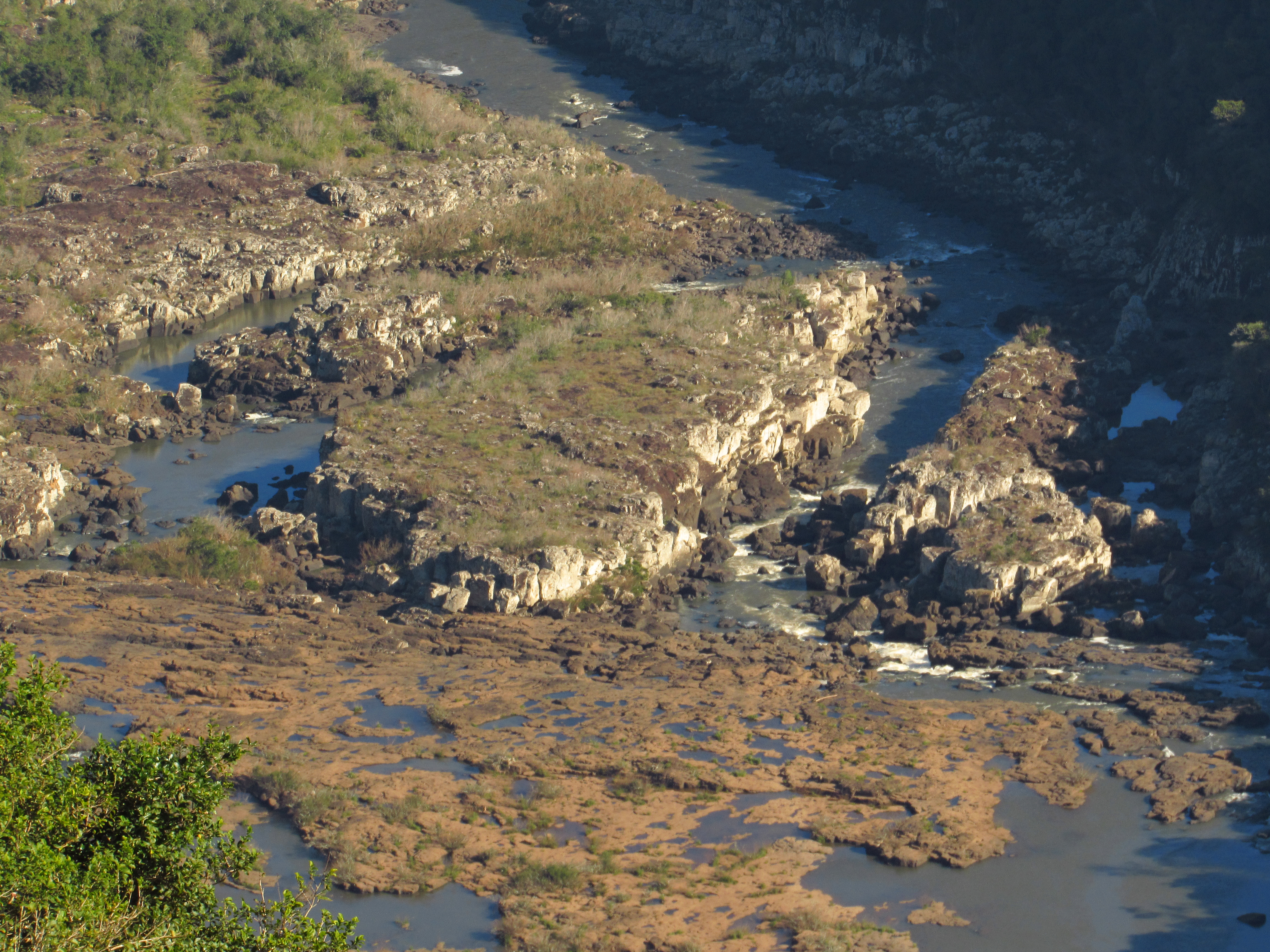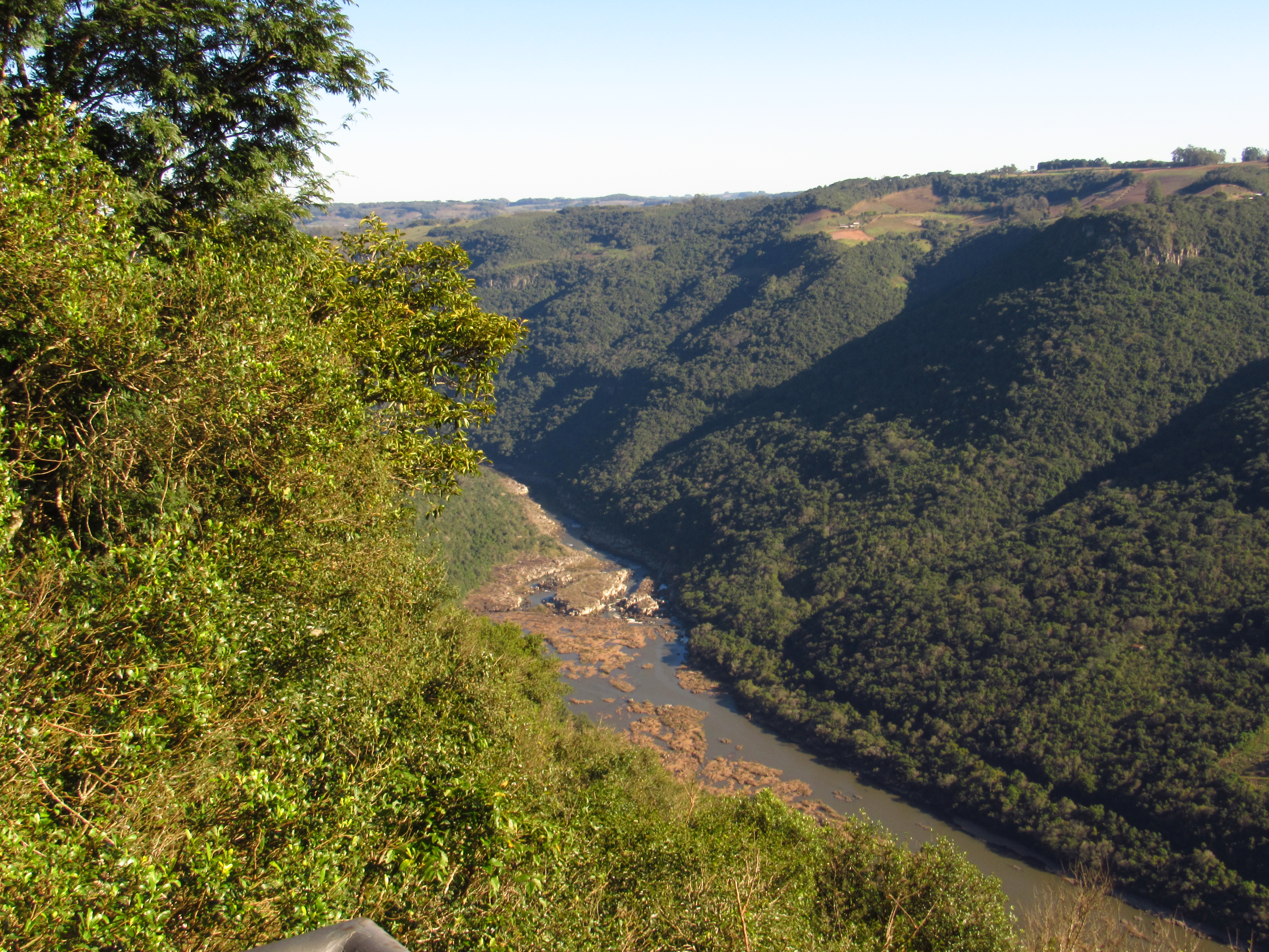 Lá do Belvedere Sonda em Nova Pádua se tem uma visão ampla desta impactante formação que já mostramos em outra postagem, e mostraremos de novo de perto. Um conjunto de rochas em meio ao leito deste importante rio do Rio Grande do Sul, que corta boa parte da serra gaúcha, forma rápidas corredeiras e pequenas quedas. O que faz com que as águas dancem no meio dela e proporcionem um espetáculo belíssimo. Do alto deste mirante a apreciação é distante, mas não menos imponente, afinal vem acompanhada de um panorama deste vale impressionante. O trecho divide este município de origem italiana, de Nova Roma do Sul, comunidade de características semelhantes e com outros atrativos naturais igualmente impactantes. As imagens foram captadas em inverno de poucas chuvas, o que permitiu não só apreciar na plenitude estas formações, como a presença de outras pedras ao longo do rio. Uma situação aliás, bem comum na região, como já temos mostrado por aqui. O lugar possui estrutura adequada há algum tempo, e está passando por nova revitalização. Afinal de contas, a paisagem merece que mais pessoas a desfrutem…