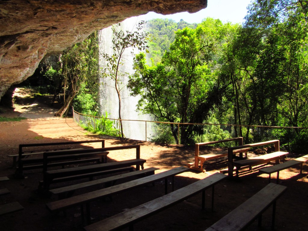 Que ficam na mesma região, em Doutor Ricardo e em Anta Gorda, no Vale do Taquari. A Nossa Senhora que teria aparecido a uma camponesa na cidade francesa de Lourdes no século XIX, é frequentemente homenageada em grutas, nem sempre naturais. Mas é claro que quando a obra é somente da natureza, o ambiente é muito mais belo… É o que acontece em Doutor Ricardo onde se pode passar inclusive por trás de uma cascata, para chegar até um lugar com bancos e altar que formam uma capela em meio a natureza. Já em Anta Gorda, no distrito chamado de Itapuca (que não é o município de mesmo nome ali bem perto), uma outra, mas bem mais profunda gruta, também recebe nos mesmos moldes os católicos e visitantes. É preciso descer uma escadaria para chegar nestes dois lugares, mas vale a pena, mesmo para os de pouca fé. O espetáculo natural é impressionante… E há ainda outros lugares semelhantes e que prestam a mesma homenagem em Nova Roma do Sul, e em Caxias do Sul, ambas na serra gaúcha. Em Nova Roma a situação é bem parecida com Doutor Ricardo e tu podes conferir na postagem: A Santa por trás da Cascata. Já no distrito da Terceira Légua de Caxias há uma cascata muito bela, mas que fica a alguns metros da gruta. Que além de ter também o seu local para orações, possui um dos paredões mais interessantes para a prática de escaladas da região… Essa tu podes ver em: A Cascata que inspira a fé em Caxias do Sul. No vídeo, há um pouco mais sobre as grutas e outras atrações da região. Mas a impressão que se tem é que ainda há outros belos lugares como estes por aí… Ainda desvendaremos mais…