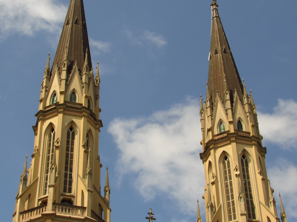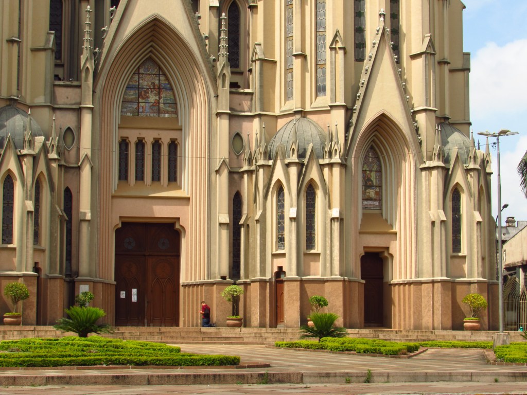 A Catedral São João Batista de Santa Cruz do Sul se impõe no centro desta cidade do Vale do Rio Pardo com todo o esplendor de seus mais de 80 metros de altura. Erguida nos anos 1930 para substituir a antiga igreja que existia ali, suas duas belas torres só foram concluídas nos anos 70 do século passado. Suas linhas extremamente trabalhadas, convidam a uma admiração demorada, mas também a passar pela porta principal, mesmo sem a intenção de exercer a fé Cristã. Afinal, o seu interior é igualmente impressionante com altos vitrais, incluindo um com cena que remete às Missões Jesuíticas no noroeste do Rio Grande do Sul. As tipuanas que formam um interessante túnel verde na rua ao lado e a praça em frente a ela, completam um cenário que vale a pena ser visitado. É claro que a cidade possui outras atrações incluindo a não menos bela igreja luterana, e na cidade vizinha de Venâncio Aires a igreja matriz também no estilo gótico é bem semelhante a ela. Mas a sua imponência na paisagem urbana, lhe confere um ar todo especial e marca o prédio como um dos mais relevantes da região…