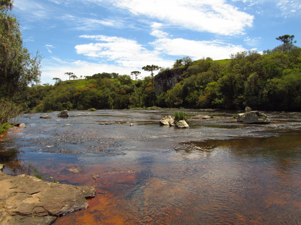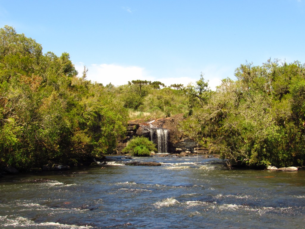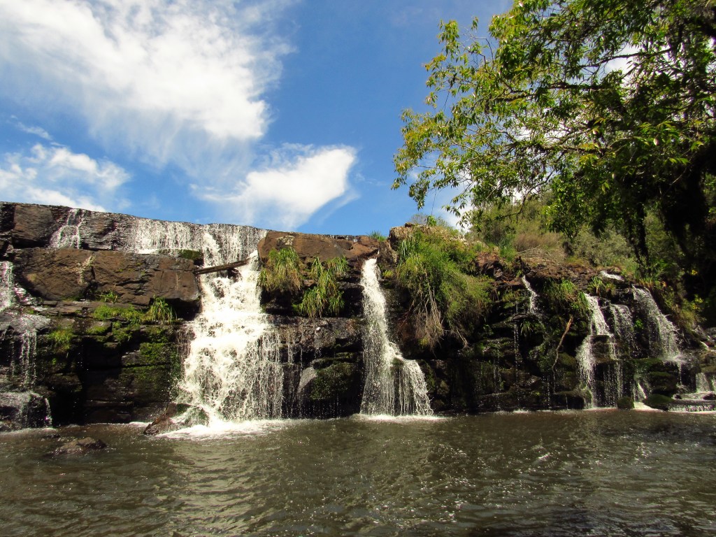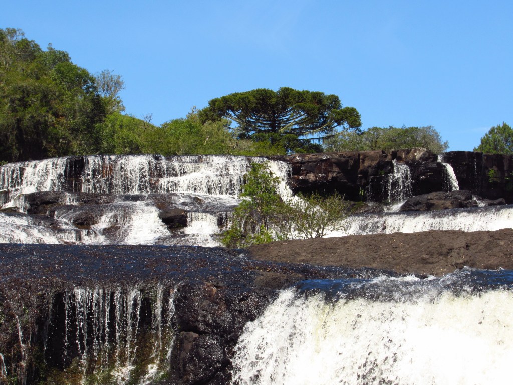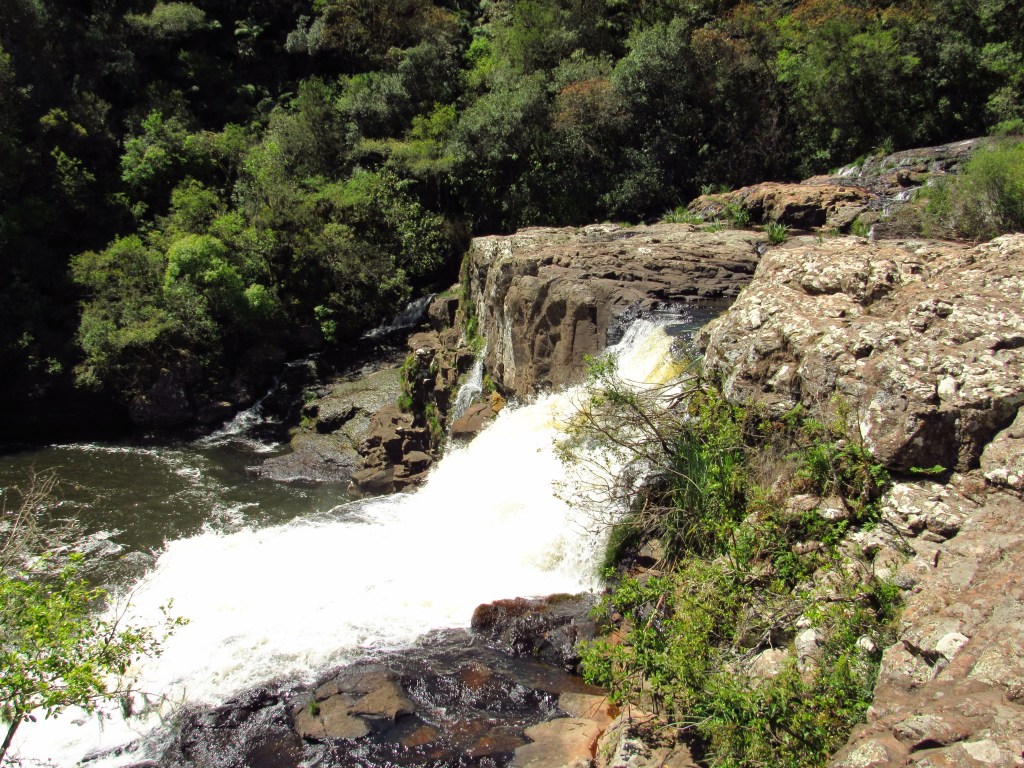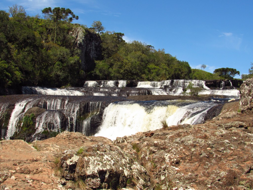 Esta é uma das mais belas cascatas em que nós já estivemos. Ela fica em Jaquirana, mas com maior proximidade da zona urbana de Cambará do Sul. São cerca de 23 Km, sendo 15 de estrada de chão até chegar neste pequeno paraíso. Se paga um ingresso e há estrutura no local, para que apreciar as vistas e até tomar banho próxima à primeira queda. Esta é bastante longitudinal sem, no entanto, ser muito alta. Após despencar ali, o Rio Camisas segue em um lento serpentear por sobre um leito de pedras, formando uma fina lâmina d´água que convida a uma reflexiva e lenta caminhada… Mas é um pouco mais adiante que se deslumbra o restante do espetáculo. Outras três quedas, que na realidade são três níveis do rio, formado por um conjunto sem fim de pequenas cascatas, seguindo na formatação larga do curso d’água. Há pontos interessantes para poder o visual de alguns ângulos diferentes, e perceber o que parece ser uma mini Foz do Iguaçu, dada a diversidade dos caminhos percorridos pelas águas cristalinas. Mais um pedaço incrível dos fantásticos Campos de Cima da Serra.