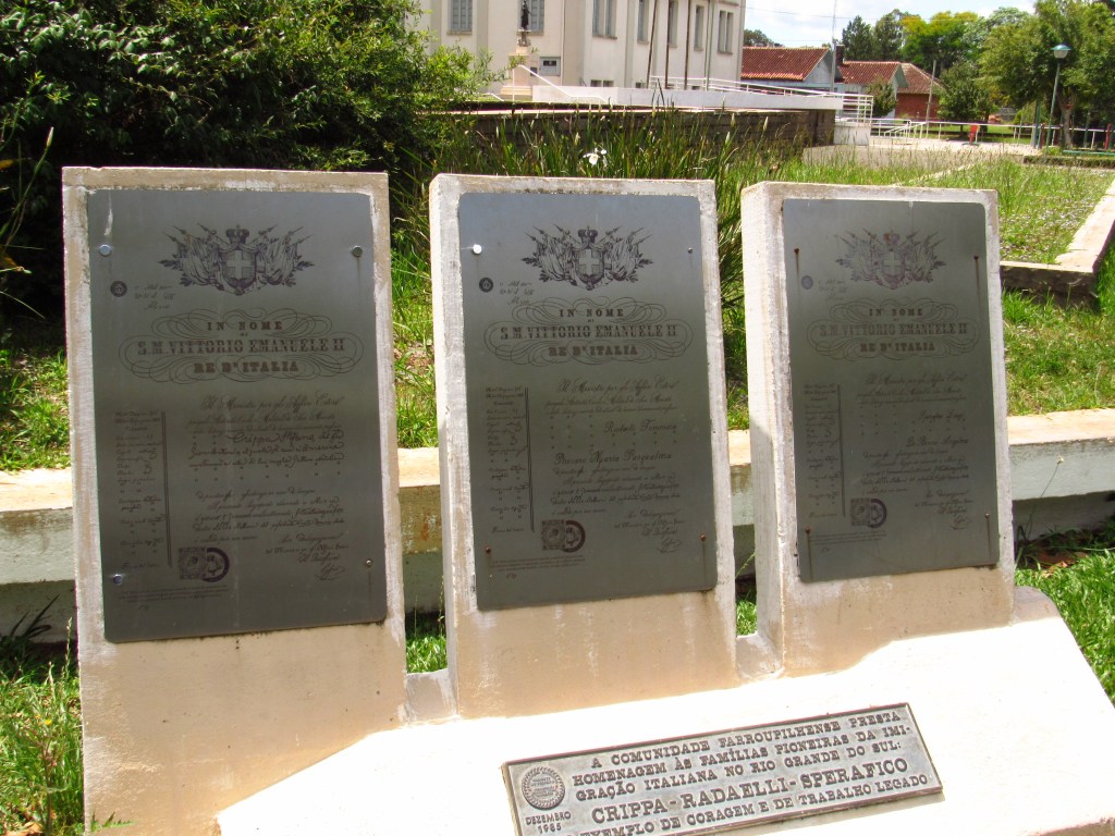 O distrito de Nova Milano em Farroupilha na Serra Gaúcha, guarda um importante testemunho da imigração italiana no Rio Grande do Sul. A começar pelo belo Parque em homenagem a este momento histórico tão relevante na história gaúcha, onde um monumento que marca este feito, se destaca na entrada. É nele que estão gravados o nome dos três primeiros chefes de família que deram início a esta saga. Junto a este, está um conjunto de bandeiras de Brasil, Itália e Rio Grande do Sul, além da representação dos municípios da região colonizados por esta brava gente. Mas é um pouco mais pra dentro desta ampla área, que o visitante é surpreendido por uma autêntica gôndola, como as que ainda navegam nos canais da mundialmente famosa Veneza. E não é por nada que ela está ali, afinal é do Vêneto, região onde fica esta cidade única, que vieram a maioria dos colonos que começaram a chegar neste local a partir de 1875. E em homenagem a outra cidade da sua terra, batizaram o lugar de Nova Milano, erguendo com o passar dos anos a Igreja de Santa Cruz que centraliza esta comunidade serrana. É ali que uma estátua da Madonnina del Duomo se destaca indicando na placa que a identifica, que é uma cópia da existente na Catedral de Milão. O curioso é que estátua teria sido presente de um Papa “João Paulo VI”, em 1975 (centenário da imigração) durante o pontificado de Paulo VI, que foi substituído em 1978 por João Paulo I… Um outro marcante monumento nesta mesma praça, que antes abrigava também a gôndola, mostra uma cópia metálica do passaporte dos três primeiros imigrantes homens: Tomaso Radaelli, Stefano Crippa e Luiggi Sperafico. Nos documentos emitidos pelo Re D’Italia (Rei da Itália) Vittorio Emanuele II constava ainda o nome das respectivas esposas, além de características físicas, como cor da pele, dos cabelos e dos olhos… Um testemunho devidamente detalhado e valorizado, do início de uma grande aventura. Com inúmeros e valorosos frutos…