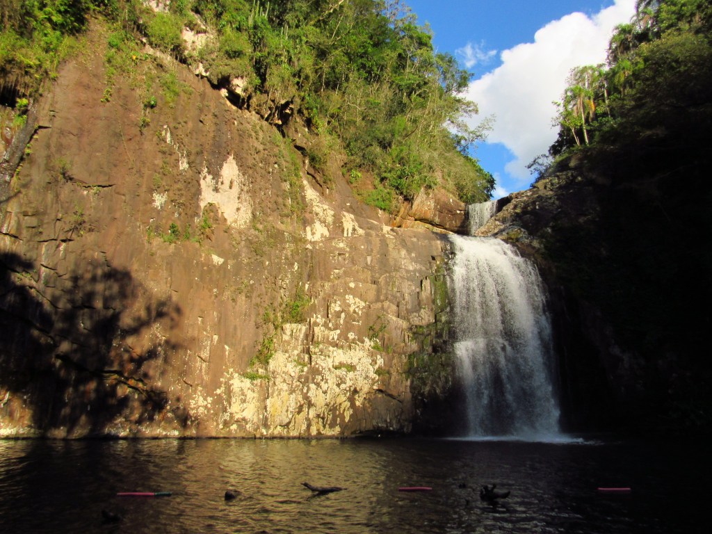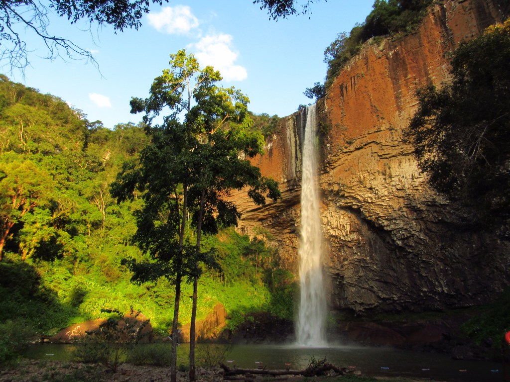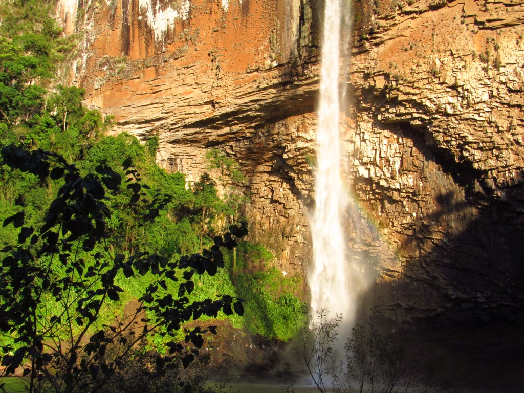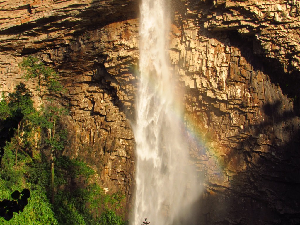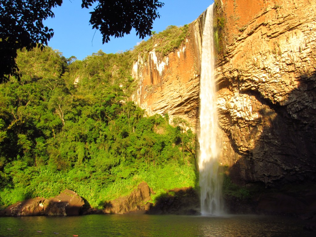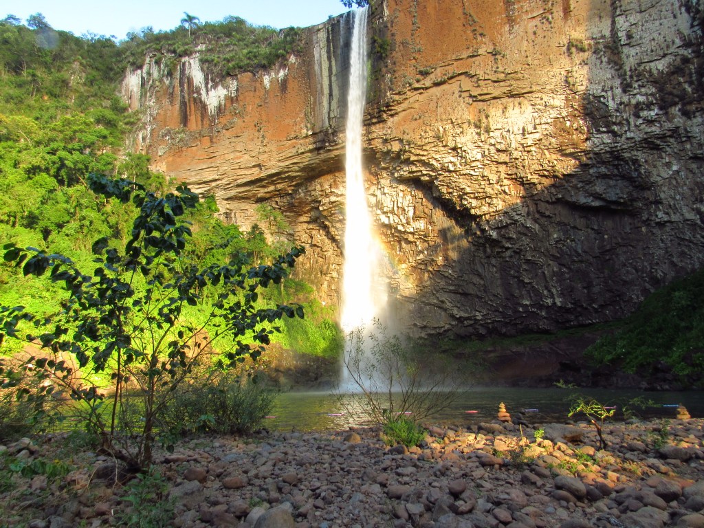 A imponente Cascata do Chuvisqueiro fica ali em Riozinho na Serra do Mar, e impressiona por sua grandeza. Uma queda alongada e alta sobre um paredão de pedras com uma formação única. Ela fica em um parque com estrutura e cobrança de ingresso, e que possui uma outra cascata chamada Três Quedas. Menor, mas de igual beleza, é facilmente acessível por uma trilha com percurso rápido e moderadamente fácil que leva até a sua base. Na beira do lago formado, porém é possível apenas a visualização de duas quedas. Mas o destaque fica mesmo com a principal, que tem esse nome por formar um chuvisqueiro ao tocar o lago, e que possui inclusive um acesso mais fácil. Afinal, é possível se chegar de carro até bem próxima as margens de um pequeno balneário com direito a salva-vidas, que zela pelos banhistas nos meses de verão. Chama atenção ainda neste espetáculo da natureza, a coloração alaranjada que o paredão fornece aos olhares mais atentos, quando iluminado frontalmente pelo sol da tarde. A sombra formada na parte curva da parede além do arco-íris na porção inferior, completam o cenário inspirador. Ainda não temos imagens da parte superior, que pode ser acessado por uma trilha, e que fica como um convite para voltar mais vezes. Em um lugar para aproveitar sem a necessidade de uma aventura mais radical, mas que também pode trazer uma grandiosa paz de espírito…