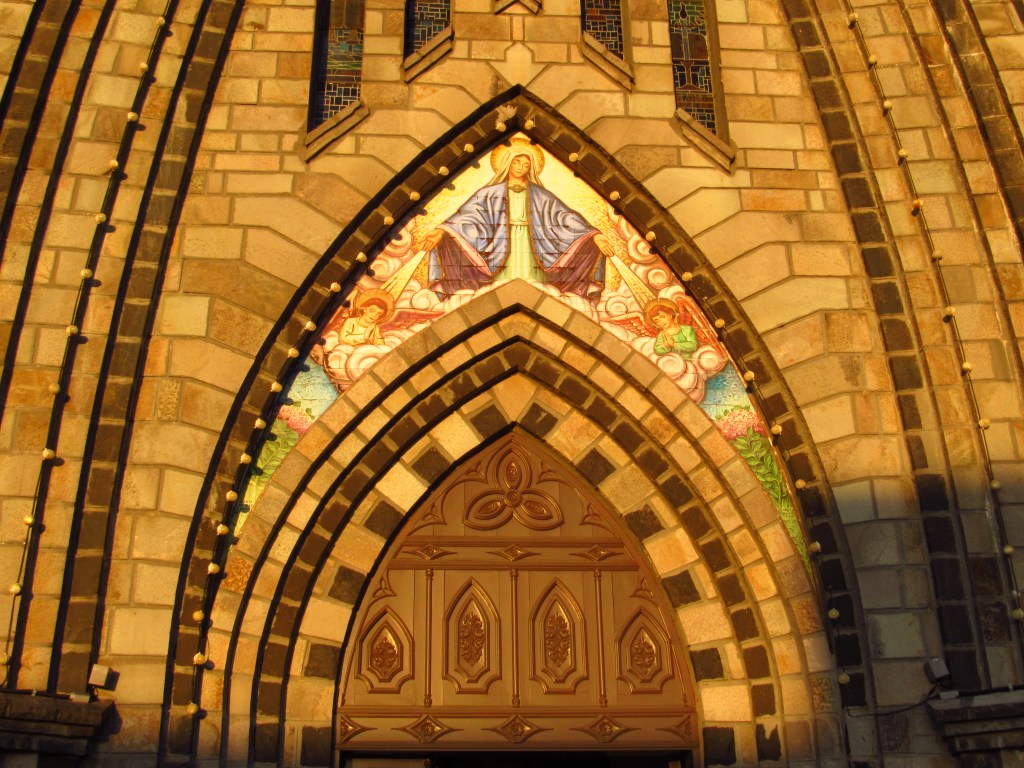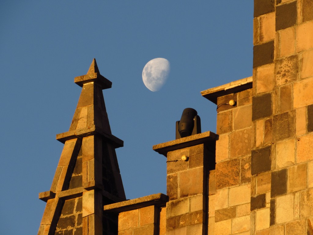 Este verdadeiro ícone da Serra Gaúcha centraliza a cidade de Canela e atrai os olhares não só dos fiéis, como de milhares de turistas que circulam ao seu redor ou mesmo apreciam o seu interior. A revitalização realizada há pouco ressaltou ainda mais a beleza das pedras de basalto, típicas da região, que acabam por dar nome a esta “catedral” que na realidade é uma igreja… Isso porque, pela organização desta importante instituição, Canela é sede de uma paróquia representada pela Igreja Nossa Senhora de Lourdes, o nome oficial deste atrativo turístico. Lembrando que a sede da diocese ao qual a paróquia pertence fica em Novo Hamburgo, onde tem uma catedral… Mas a imponência de seus 65 metros de altura, justificam este “nome fantasia” com a qual cidadãos e visitantes já se acostumaram a chamá-la. E ela fica com uma coloração especial com a iluminação do sol de um entardecer outonal. Que parece esquentar as cores de suas pedras, como deve ocorrer também com apaixonados corações que passam por ali. Sempre dispostos a levar uma imagem junto ao recém implantado letreiro com o nome da cidade… Mas foi uma apreciação mais atenta deste magnífico final de tarde, que nos fez perceber a presença de uma lua quase cheia a fazer companhia a suas torres. Ao menos no olhar aproximado das lentes da máquina fotográfica… E tentamos de alguma forma colocar o romântico astro para dançar com as geométricas formas, das estruturas e pedras que a compõe. Para completar, o badalar dos seus sinos de bronze vindos da Itália, conduzem os que os ouvem a um elevado estado de espírito. Sendo imediato, o irresistível convite para entrar no seu interior e apreciar os belos vitrais, enriquecidos com temas regionais, e as marcantes pinturas de suas paredes com cenas da anunciação, alegoria dos anjos e aparição de Nossa Senhora… As belas imagens seguem surpreendendo ao anoitecer quando é realçada sua iluminação básica, antes mesmo que se inicie o espetáculo de luzes que enobrece ainda mais esta marcante construção. Mas este evento noturno vamos mostrar em outra oportunidade…