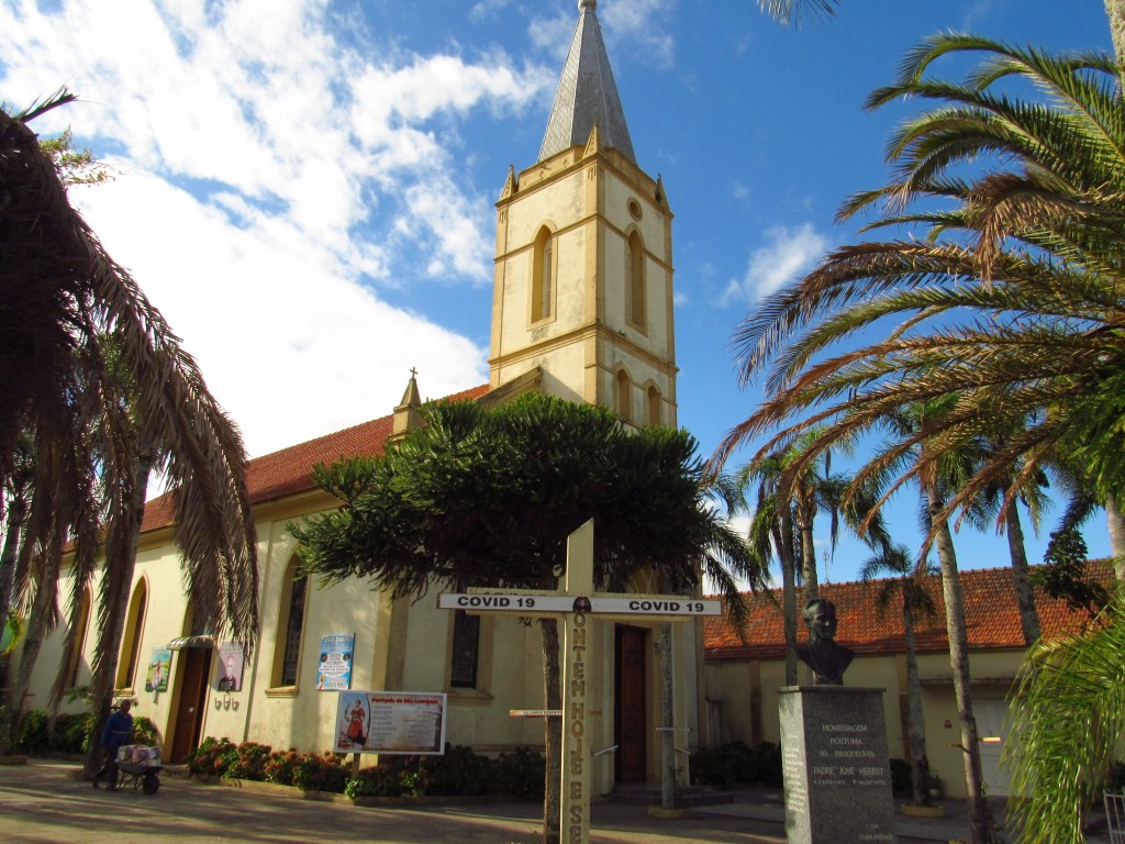 O centro da cidade de São Lourenço do Sul guarda um patrimônio histórico interessante que convida a uma apreciação mais atenta… Esta bela cidade às margens da Lagoa dos Patos, tem origem nas divisões territoriais que se seguiram a distribuição das datas de sesmaria. Essas por sua vez eram grandes extensões de terra doadas pelo rei de Portugal aos que contribuíam nas lutas com os espanhóis pelo domínio destes campos… E uma destas propriedades pertencente a José Antônio Guimarães, a partir de século XIX passa a receber imigrantes vindos da antiga região da Pomerânia, que abrangia o que hoje é parte do norte da Alemanha e da Polônia. Esse lugar inclusive pertencia ao Império da Prússia, local de nascimento do agrimensor Carlos Knüppeln responsável pelo lançamento do loteamento comercializado por Jacob Rheingantz, nas terras de Guimarães… E era de Knüppeln, a propriedade chamada Sobrado Bela Vista bem em frente a praça central, que tinha esse nome pois de seu segundo piso se enxergava até a lagoa… O prédio rosado que hoje abriga museu e biblioteca (fechados em tempos de pandemia), foi ao longo da história, intendência, delegacia e até hospital… Ainda no centro histórico a igreja luterana parece centralizar a cidade, talvez por ser esta a religião predominante entre os imigrantes. Tanto ela como a católica têm a interessante companhia de palmeiras… Mas a católica que faz homenagem ao santo que dá nome ao município, fica em uma esquina bem próxima de outros belos casarões. Um deles tem, como era costume até pouco tempo atrás, a placa com o nome da rua colocada em uma de suas paredes, onde está escrito Almirante Abreu. A denominação faz referência a um dos heróis da Guerra do Paraguai, que quando menino observava a frota de Giuseppe Garibaldi navegando pelas águas do rio e da lagoa… Este importante personagem teria, depois de sua morte, dado nome a um navio da marinha brasileira. Uma história que já contamos aqui, e que enriquece ainda mais este belo cenário. Merecedor de uma dedicada preservação, e de uma devida valorização…