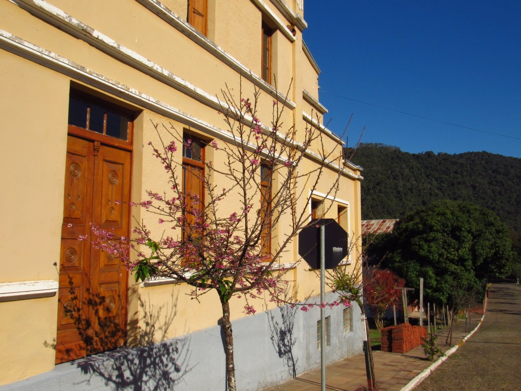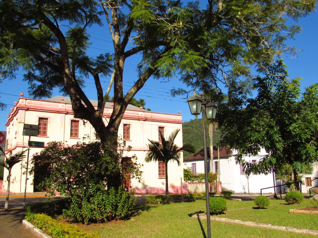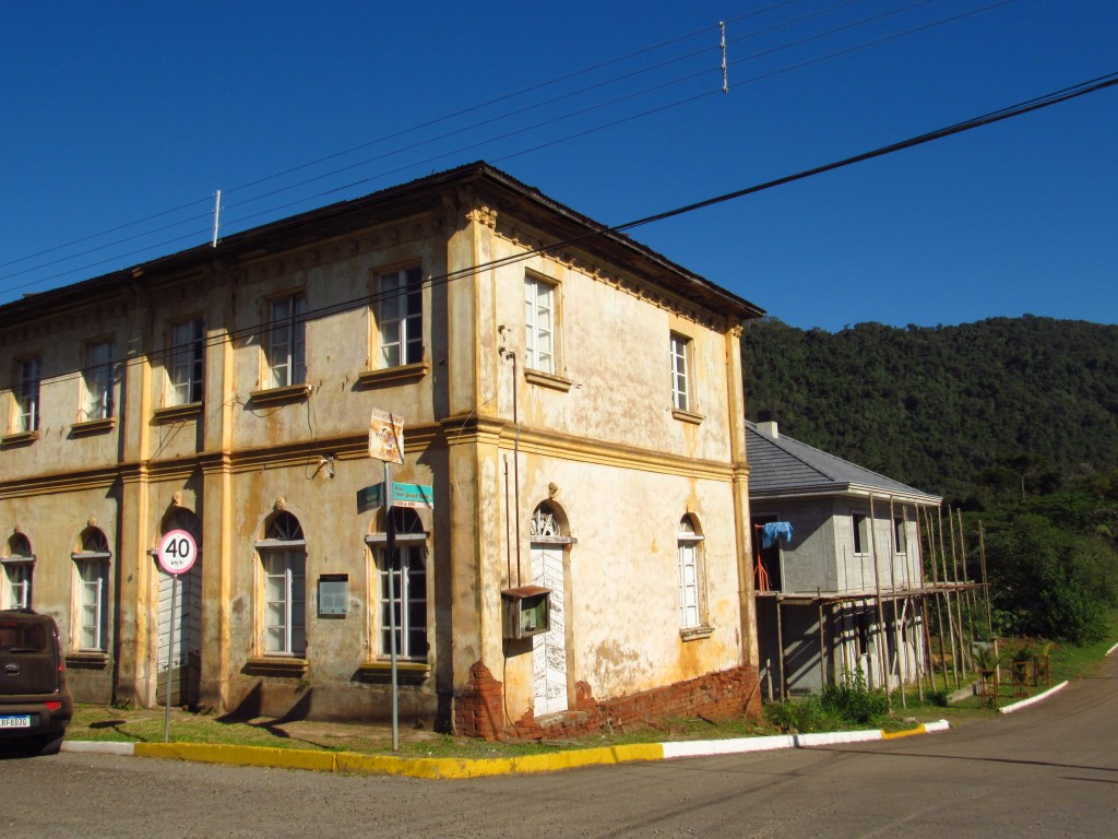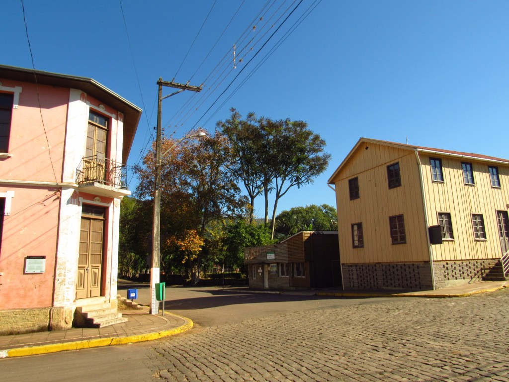 A cidade de Santa Tereza guarda um interessante patrimônio centralizado por um esbelto campanário, que é cópia de um existente na Itália. Já mostramos e falamos dele por aqui, e como dissemos o lugar tem mais… Em uma rápida caminhada é descortinado um conjunto de casas e prédios da virada do século XIX para o XX, com muita história para contar. E elas estão resumidas em placas em frente a cada um deles. Lá está a Casa Lahude que até hoje é um armazém que foi adquirido por Miguel Lahude imigrante sírio-libanês. Uma das pioneiras escolas, hoje transformada em Biblioteca Pública também fica nas cercanias da praça onde está a moderna igreja e o campanário, e onde se pode apreciar a Casa Piccinini. Este abrigou lugar um antigo hospital comunitário, mas o prédio teve que ser devolvido a Amadeo Piccinini para pagamento de um empréstimo… Na Avenida Itália em frente ao armazém a Casa Prezzi, construída pelos irmãos Franceschini, era palco de ensaios de música em seu terraço… E a cidade teve desde os primeiros anos em uma outra casa, o Hotel Central que acabou dando lugar ao Banco Nacional de Comércio. Um pouco mais abaixo ainda nesta rua principal, estão a casa da oficia e maxambomba, que como já falamos em outras publicações, era um conjunto de trilhos para trazer por tração animal, as malas e caixas da beira do rio até este local. Ali na frente a Casa Appiani e Savoia produzia acordeões. A marca trazida da Itália foi substituída ao longo dos anos pelas marcas Somenzi e Todeschini… Até o prédio da prefeitura local tem uma trajetória descrita nas paredes pois pertenceu a casa de comércio da família Stringhini. E é claro que não podia deixar de estar presente, as tradicionais construções de madeira com lambrequins, típicas da colonização italiana. A Casa Miele foi ocupada a parti de 1910 por uma barbearia e uma incipiente fábrica de sapatos… Histórias de uma vida que são devidamente valorizadas neste e em outros casarões do lugar, que também possuem placas com mais trajetórias dos que vieram fazer a América. Um lugar pra voltar mais vezes e contar com mais detalhes, a saga de sua gente e o belo legado deixado em meio a uma paisagem exuberante na Serra Gaúcha…
