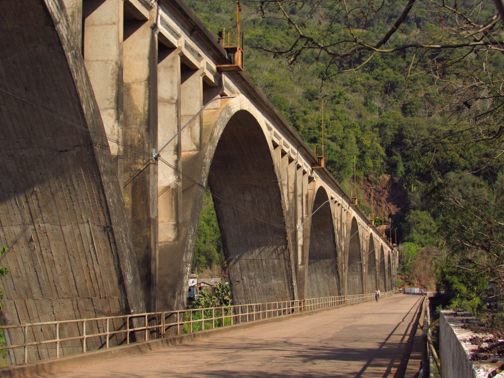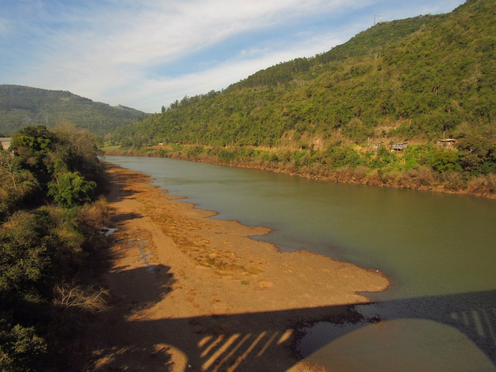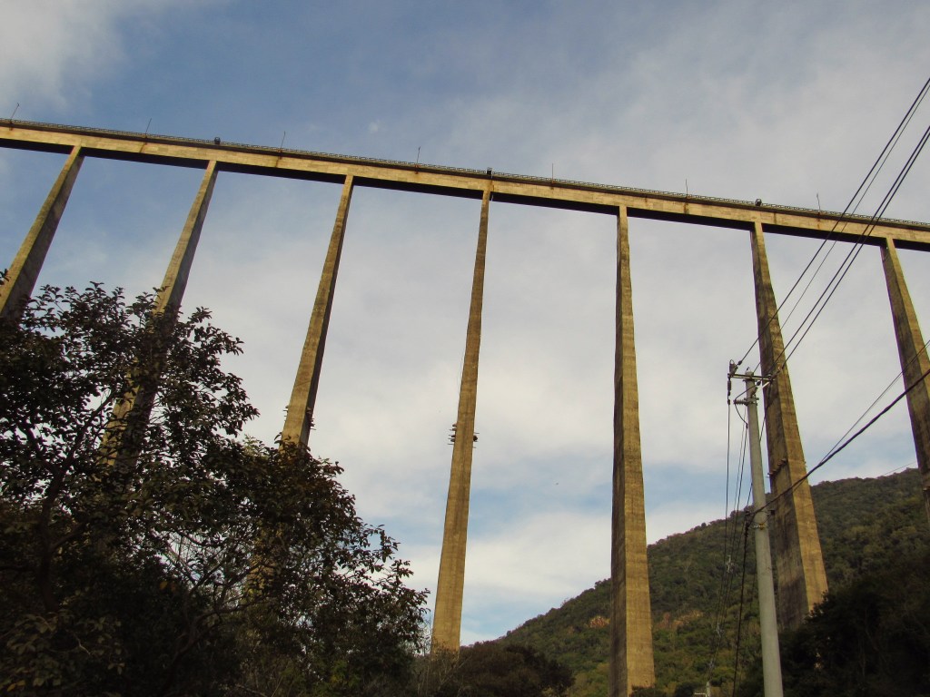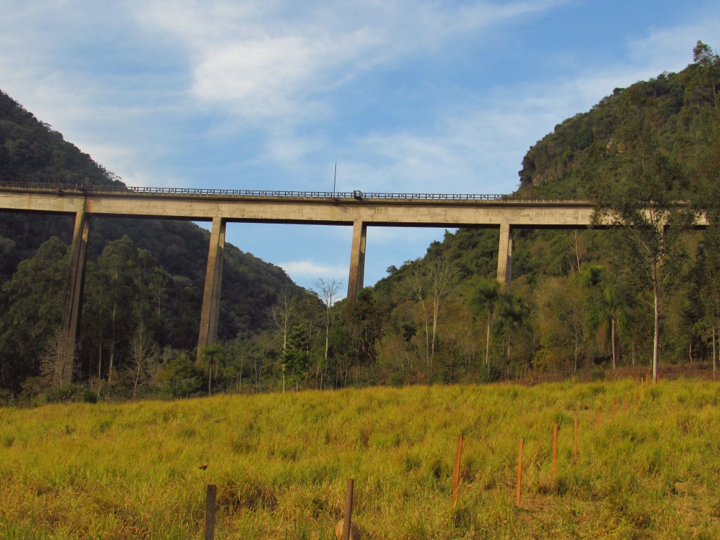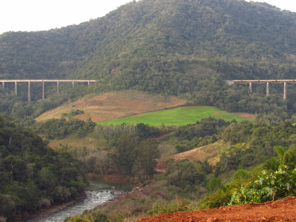 Perto da cidade de Muçum onde o Rio Guaporé encontra o Taquari, uma estrada de chão conduz o viajante a um impressionante conjunto de paisagens. E não é um trecho qualquer. Afinal, ao longo do percurso se vislumbra o espetáculo das águas deste importante rio, correndo mansamente em meio a verdejantes campos com montanhas ao fundo. A situação da estrada que em boa parte está em um nível mais elevado em relação ao leito do rio, potencializa e amplia ainda mais esta visão. Mas o grande diferencial que também encanta, é o conjunto de viadutos e túneis da belíssima Ferrovia do Trigo que acompanha do outro lado o caminho dos veículos. Esta bela estrutura erguida nos anos 1970, chegou a receber por alguns anos trens de passageiros, mas foi o transporte dos grãos que lhe dá nome, o seu carro chefe, com algumas composições em menor número ainda circulando por ali. Incluindo a passagem pela belo Viaduto Brochado da Rocha que cruza além de ruas da cidade de Muçum, o Rio Taquari onde se transforma em uma ponte rodoferroviária. Mas a magnitude de túneis furando morros para subir do vale ao planalto, e os viadutos que permitem uma vista ainda mais bela do vale, impulsionaram os sonhos da volta das pessoas aos trilhos. Principalmente para se encantar com este espetáculo da natureza, como tem feito nos últimos anos os que subiram ao maior de todos, o Viaduto 13. E ele, que é um dos maiores do mundo e do qual falaremos mais em outros conteúdos, tem atraiu tanta gente, que teve ampliada a sua fiscalização, pois é proibido a permanência de pedestres sobre os trilhos. Mas este sonho de percorrer este trecho se materializou e um trem turístico já está circulando durante alguns dias do ano. Para levar não somente os que gostam de voltar no tempo da predominância do balanço dos vagões, mas também dos que não se cansam de admirar as impactantes paisagens naturais do Vale do Rio Guaporé…