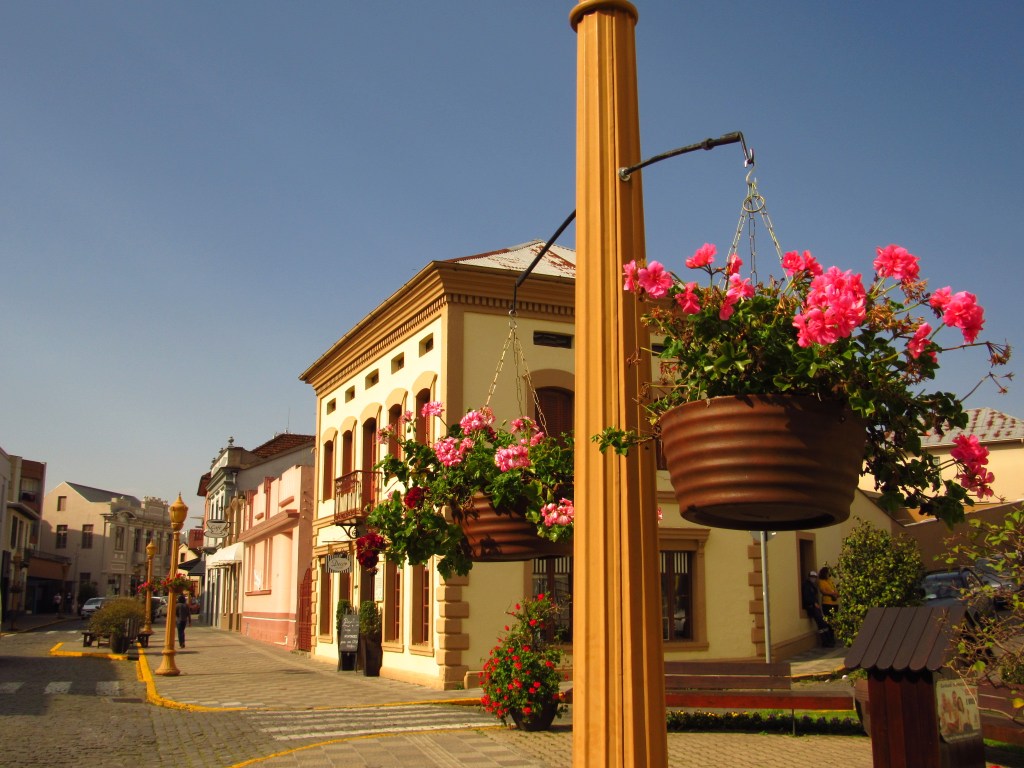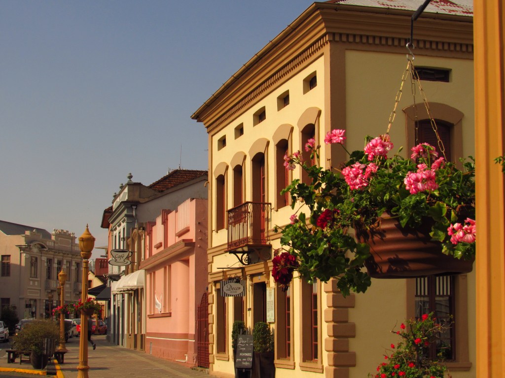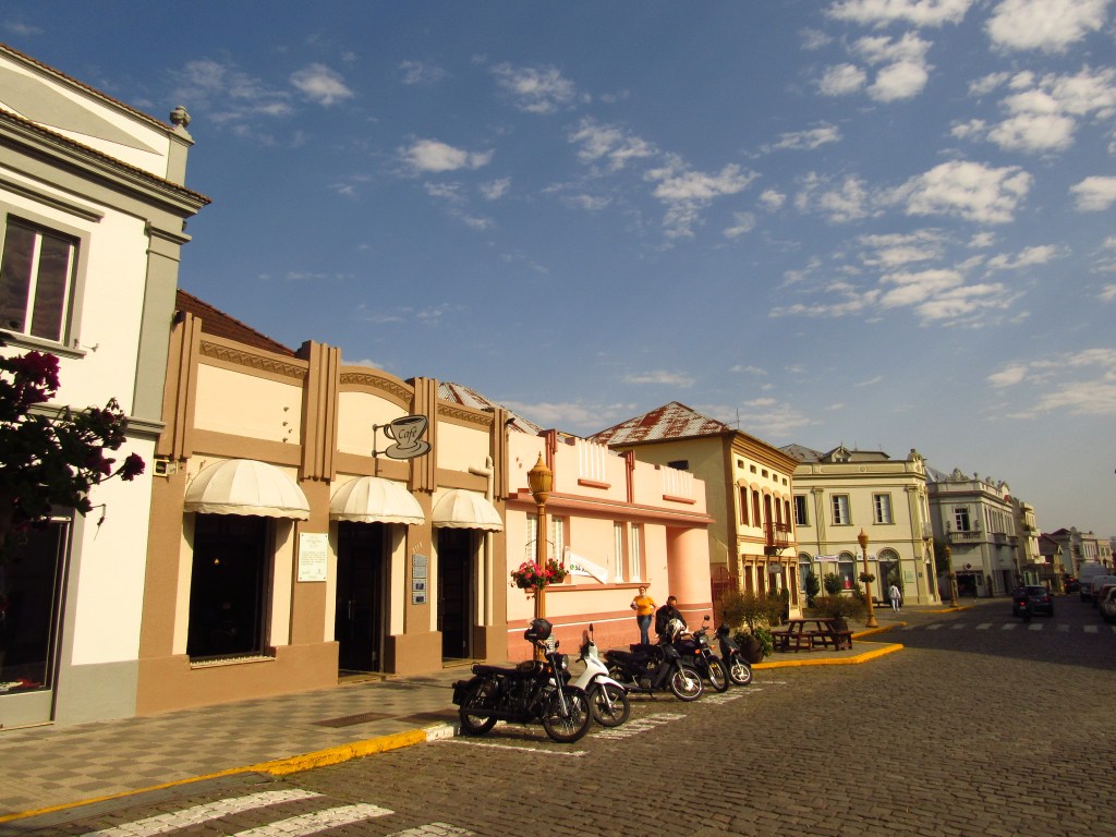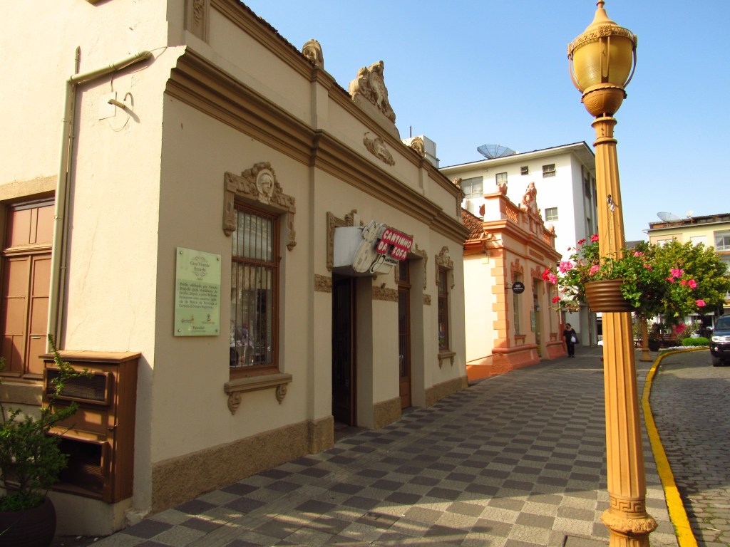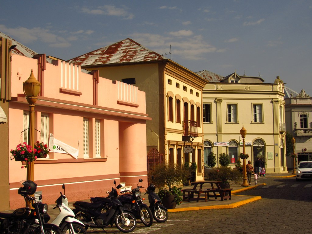 E não é só da produção de espumantes que a acolhedora Garibaldi, na Serra Gaúcha pode se orgulhar. O conjunto de marcantes prédios erguidos principalmente no começo do século XX, no centro da cidade, são um convite a vagarosas passadas para apreciar as suas linhas. Isso para fazer jus ao nome do roteiro Passadas a Arquitetura do Olhar, que identifica com placas as pouco mais de 30 edificações com o seu nome e breve histórico. E a trajetória de boa parte delas está relacionada a estrada que ligava a capital gaúcha ao planalto central brasileiro, sistematicamente percorrida por tropeiros que enfrentavam a dura subida da serra. Trazendo no lombo de suas mulas, mercadorias diversas para serem comercializadas em alguns destes estabelecimentos. Mas quem se fixou em grande número na região e deu corpo a cidade foram os imigrantes italianos que começaram a chegar a partir de 1875. A colônia que se iniciou de forma tímida com Prussianos em 1870, recebeu primeiro o nome de Conde D’Eu, mas foi renomeada depois com a homenagem ao corsário italiano Giuseppe Garibaldi, um dos líderes dos Farrapos na Revolução Farroupilha. Uma estátua dele em cima do cavalo faz lembrar do personagem logo na entrada da cidade. Mas é nos prédios que se contam histórias de progresso econômico e social, ficando difícil resumir em poucas palavras o legado de todas as “casas”. A dos Branchi que foi sede do Banco da Província e cartório, o Café Luna Park que já recebia mulheres nos anos 1930 e segue na mesma atividade até hoje, são alguns bons exemplos. Assim como a antiga “Pharmacia” Providência que no segundo andar onde morava a família, recebeu até mesmo governadores gaúchos do passado como Borges e Vargas para discursar ao povo. E outros imponentes prédios acompanham aos que como nós caminham com olhar atento, percebendo inclusive belos rostos e estátuas caprichosamente esculpidos e bem conservados, enfeitando as centenárias paredes. Assim como os nomes de seus antigos proprietários, onde em meio aos de óbvia origem italiana, se destacam os de sírio libaneses como os Koff que também se destacaram no comércio, principalmente entre 1900 e 1950. E as restaurações e recuperações seguem sendo realizadas para valorizar o lugar, como a recente pintura da Casa de Pasto, importante ponto de apoio, quando começou a funcionar como pousada em 1897. No passeio, o visitante ainda é presenteado com mais arquitetura antiga, com na Piccola Garibaldi. Uma exposição de maquetes dos principais prédios da cidade, que formam um singelo cenário, para entender de forma abrangente o espírito e a história desta comunidade. História essa que pode ser entendida melhor no Museu Municipal em um outro prédio histórico. Passando por melhorias em parte de seu acervo em 2021, o lugar possui exposição que destaca a saga de Garibaldi e sua eterna companheira Anita. Além de contar o passado do próprio lugar, com os documentos do arquivo histórico no segundo andar. Neles fica-se sabendo que o lugar começou em 1884 como sede da Societa Italiana di Mutuo Soccorso dedicada a reunir e apoiar os recém chegados da Itália. Sendo ainda sede do consulado e moradia do primeiro Cônsul Abramo Canini, que sugeriu dar o nome que a cidade tem hoje. O prédio serviu também para outros usos, que incluíam um hospital, até ser atacado e incendiado durante a segunda guerra, provavelmente ocasionado pelos ódios políticos que o conflito na Europa suscitava por aqui… Doado ao próprio governo da Itália após o ocorrido, foi devolvido à comunidade para mais tarde, já nos anos 1980, abrigar o museu. Mas há muito mais a mostrar e contar, neste lugar relevante da serra, que vem atraindo mais visitantes para se encantar com as belezas de suas paisagens, e com suas histórias e culturas. Já falamos em outros conteúdos, e vamos voltar a mostrar o seu patrimônio religioso, seus espumantes e vinhos, o charmoso trem antigo que circula por ali, e o que esta comunidade vem fazendo para melhor receber a todos nós…