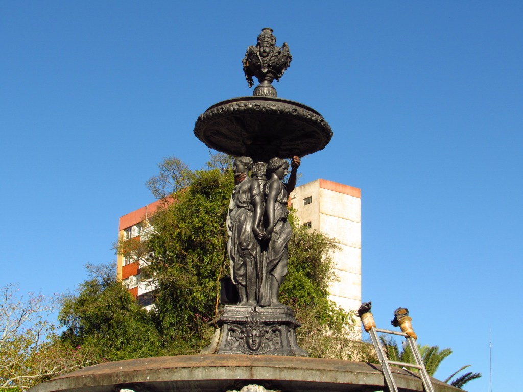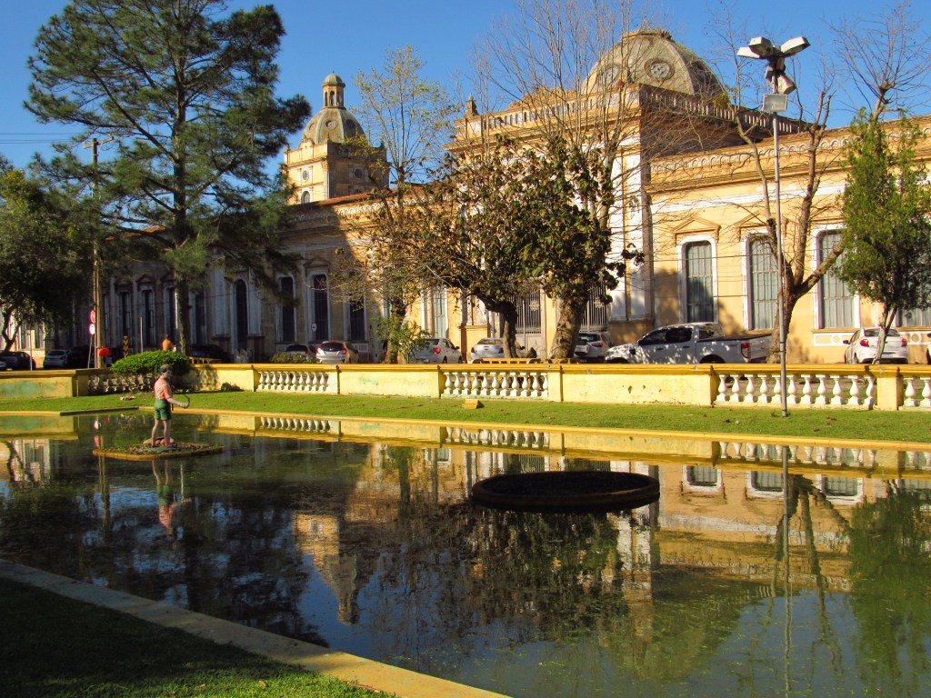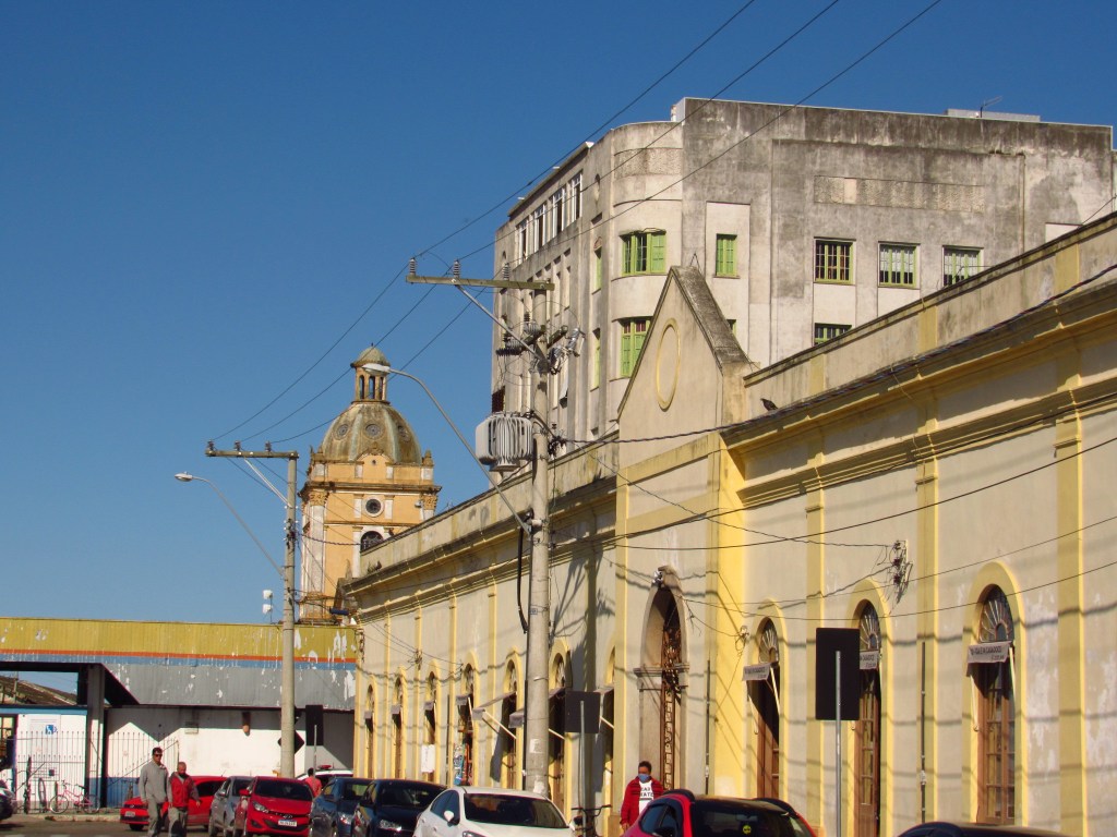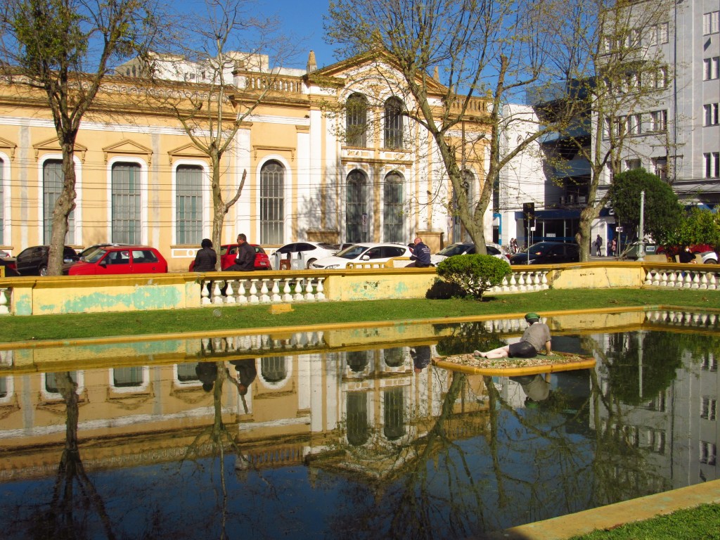 No coração da cidade de Rio Grande nas margens da ligação da Lagoas dos Patos com o mar, um imponente e amplo prédio centraliza um lugar especial. Com suas grandes portas e janelas que se distribuem em uma quadra inteira, a Alfândega erguida em 1879 por ordem de Dom Pedro II, é acompanhada do Mercado Público, de uma praça com interessantes detalhes além de uma parte do porto ali do outro lado da rua. E ainda há mais na região central, que terão que ficar para outros conteúdos… Também situado próximo as águas o Mercado Público foi erguido em 1863 e pode-se dizer que é uma porta de entrada da cidade em uma espécie de ligação entre as águas e a terra. Com seu característico estilo lusitano é um lugar onde se comercializa não só o que é plantado ou fabricado em terras daqui ou de locais distantes, mas também o que é retirado das águas doces e salgadas, que bem na frente fazem seu encontro… Mas é o prédio da Alfândega que rouba a cena com suas torres e belos detalhes ornamentais. Com o objetivo de ser um lugar onde se fiscaliza a atividade econômica, suas instalações ainda se prestam a isso, sendo ocupadas por escritórios da Receita Federal. Revitalizado em fins do século passado, recebe ainda um Museu Municipal que nestes tempos de pandemia, infelizmente estava fechado… Ficamos nos sentindo convidados a voltar outras vezes, inclusive para apreciar com mais calma não só o seu acervo, mas também belos detalhes da Praça Xavier Ferreira, sua vizinha. O Chafariz das Três Graças importado da França que está em seu centro e faz referência as três filhas de Vênus, bem como o seu entorno, estavam sendo limpos e conservados por uma dedicada equipe, neste setembro de 2021. O espaço inaugurado para comemorar o centenário da Revolução Farroupilha em 1935 possui também uma coluna esculpida em mármore trazida da Itália que homenageia a libertação dos escravos. Mas o que nos encantou mesmo foi o espelho d’água que reflete o prédio da Alfândega no lado leste do lugar, proporcionando belas imagens. Nele duas interessantes estátuas de guris de calças curtas, bonés e suspensórios, também despertam a curiosidade. Elas foram revitalizadas em 2019 a tempo de Gelci Azevedo, nos seus experientes 88 anos, presenciar o ato. Afinal foi ele que serviu de modelo vivo nos idos dos anos 1940, para o escultor italiano Matteo Tonietti conceber o menino que usa uma atiradeira. Seu Gelci nos deixou, pelo que soubemos, poucos meses depois desta reinauguração, mas a sua infância foi imortalizada em uma obra que retrata uma época e uma cultura. Que tem tanto significado quanto as estruturas e outras homenagens que lhe fazem companhia, nesta cidade que tem muito mais a mostrar…