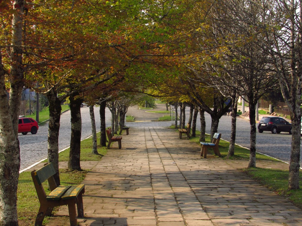 Depois de completar um dos caminhos que sobem a serra, principalmente quem vem da capital gaúcha, o viajante é recebido com a amplitude da paisagem dos campos de cima da serra. Pois foi ali nesta beirada que surgiu no século XVIII um povoado, por iniciativa do então proprietário destas terras de nome Pedro da Silva Chaves. E como devoto de São Francisco de Paula, mandou construir uma capela para reverenciar o peregrino italiano que viveu no século XV propagando uma vida de extrema modéstia. A figura do santo, aliás está estampada no principal vitral da atual matriz em companhia de outros de igual beleza, que se destacam no interior do templo erguido em 1964 em substituição à um mais antigo. Bem perto dali uma antiga casa de arquitetura lusitana que também merece um olhar mais atento, recebe a sede da prefeitura na Avenida Júlio de Castilhos, principal da cidade. E é percorrendo o canteiro central desta via, que no outono é preenchida com as cores intensas de plátanos e liquidâmbars enfileiradas ao longo do passeio, que se pode conhecer um pouco mais da história da região. Monumentos como a Cuia (sempre usada para o tradicional chimarrão), o Negrinho do Pastoreio, o Carreteiro e o Tropeiro caracterizam a cidade como síntese do gaúcho serrano com suas sutis diferenças da figura do Pampa… Afinal não dá para falar do lugar que era habitada por índios Caaguás da tribo dos Coroados, sem citar a figura dos que conduziam a tropa dos campos do sul para o planalto e os que traziam em suas carretas puxada a juntas de boi, mantimentos de outras terras. Mas não são somente estas figuras que por ali traçavam rotas as homenageadas com monumentos. A figura lendária do menino escravo que perdeu o gado e foi castigado por seu patrão, também se faz presente. A expressão de seu sofrimento evidencia a punição de ser chicoteado e amarrado em uma árvore junto a um formigueiro onde teve seu fim… Muitos até os dias de hoje lhe prestam devoção quando querem encontrar algo, pois dizem que quando seu severo dono voltou ao local do castigo encontrou o jovem vivo e saudável ao lado da Nossa Senhora, antes de sair montado a cavalo pelos campos… Lendas e histórias como estas podem ser encontradas na belíssima Livraria Miragem também na mesma rua. Embora nossas palavras possam parecer mera propaganda do lugar, não dá para deixar de reverenciar uma verdadeira atração turística de São Chico. Idealizada pela professora de História aposentada Luciana Soares, possui ambientes que remetem a cultura de todo um estado… Seja da federação brasileira, ou de espírito… Os ambientes variados possuem muito mais do que livros, e são completados com detalhes que transportam o viajante a um mundo distinto da singeleza dos campos que o cercam. Fazendo parte deste conjunto está ainda o prédio que pertenceu ao Banco Nacional de Comércio instalado em 1918, com seu interior preenchido com mais imagens e objetos que tem muito a dizer sobre esta comunidade incrível. Uma comunidade que é resultado do encontro de etnias. De gaúchos descendentes de portugueses de campos altos e baixos, de índios e de escravos, e porque não de imigrantes alemães e italianos que chegaram perto dali. Afinal, em sua história, São Chico que pertencia a Santo Antônio da Patrulha, chegou a fazer parte de Taquara colonizada em parte por germânicos, antes de se emancipar. E depois acabou perdendo alguns distritos para a Caxias do Sul dos italianos… Mas o que São Chico nunca perderá é sua magnífica história e seu patrimônio material e imaterial. Que junto com as paisagens únicas e exuberantes, fazem deste pedaço do Rio Grande do Sul um lugar especial…