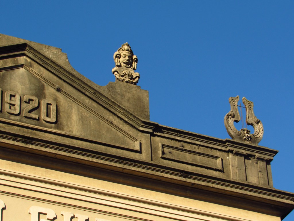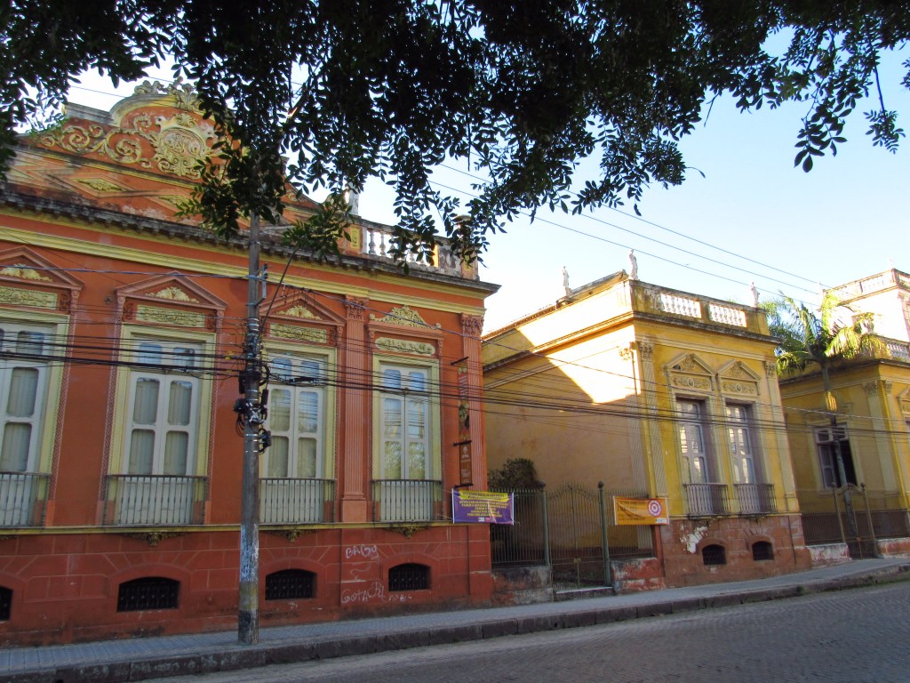 Algumas atividades da nossa sociedade são responsáveis muitas vezes por erguer belos prédios que marcam a paisagem de uma cidade, e que ajudam a contar a história não só destas atividades, mas como de toda uma comunidade. E assim é na Pelotas de um conjunto urbano muito mais do que especial e histórico. Afinal, como estamos destacando por aqui, a riqueza resultante de um importante ciclo econômico, foi em boa parte transformada em arte e cultura. E seus dois antigos e principais teatros mostram isso com clareza. O centenário Guarany, que recebeu uma peça inaugural com este mesmo nome em 1921, teria sido uma espécie de resposta a problemas ocorrido com o proprietário de um camarote no Sete de Abril, este datado de 1834 e do qual falaremos mais adiante… Com enfeites que enaltecem figuras indígenas, o Guarany funciona até os dias atuais, esbanjando cultura. Ao seu redor grandes casarões também são, a exemplo do teatro, verdadeiras obras de arte, como o que fica na sua frente, onde até os vidros possuem artísticos detalhes. Ali ao lado a imponência de uma casa onde viveu um senador dos primeiros anos da república, se destaca na rua e hoje recebe atividades da Universidade Federal de Pelotas. E o deleite de arquitetura histórica segue quando se chega na quina da Praça Coronel Pedro Osório. As casas geminadas desta esquina em perfeito estado de conservação formam um conjunto harmônico e imponente. E um pouco mais adiante, em processo de restauro, está o histórico prédio do antigo Grande Hotel e sua impressionante cúpula trazida da França. Em um outro lado da praça está mais uma sequência de belas casas também conhecidas por seus números 2, 6 e 8… Cada qual com sua história e ocupado por museus (que ainda estavam fechados em setembro de 2021), além de outras atividades também ligadas à universidade. Falar delas com mais detalhes é tarefa para outras visitas e outros conteúdos, para dar o devido valor a toda a sua riqueza. Até porque tem mais ali perto relacionado à cultura… O Clube Caixeiral que em sua história promoveu festas e reuniões com muita música desde sua fundação em 1879, está com uma bela pintura rosada brilhando de nova. A conservação atualizada enaltece ainda mais belas estátuas de figuras mitológicas gregas, empunhando símbolos da literatura e da música. E isso é só um exemplo dos interessantes detalhes de sua fachada… Mas é neste mesmo lado da praça, que um verdadeiro ícone da cultura pelotense e gaúcha está estabelecido desde 1834. O Teatro 7 de Abril, primeiro do Rio Grande do Sul, faz alusão a data da abdicação do trono de por parte de Dom Pedro I, fato que é considerado por alguns como uma verdadeira independência do Brasil. Com longa trajetória, interrompida no período dos combates da Revolução Farroupilha entre 1835 e 1845, este importante testemunho da história está também passando por restauro. Na sua fachada além do ano do seu início, também aparece a data de 1916, quando houve uma grande reforma que teria alterado significativamente suas linhas originais… Muito provavelmente após esta nova intervenção que lhe deu interessante coloração avermelhada, ele deverá voltar a receber espetáculos, em um momento de uma retomada… E que nesse retorno ele possa brilhar, ao lado dos demais prédios que mostramos aqui e outros que ainda mostraremos neste leva atual de conteúdo. Pois o patrimônio desta encantadora cidade é rico demais, e ainda há muito o que compartilhar, reverenciar, e principalmente vivenciar…