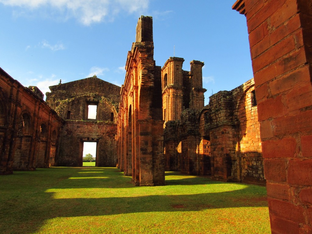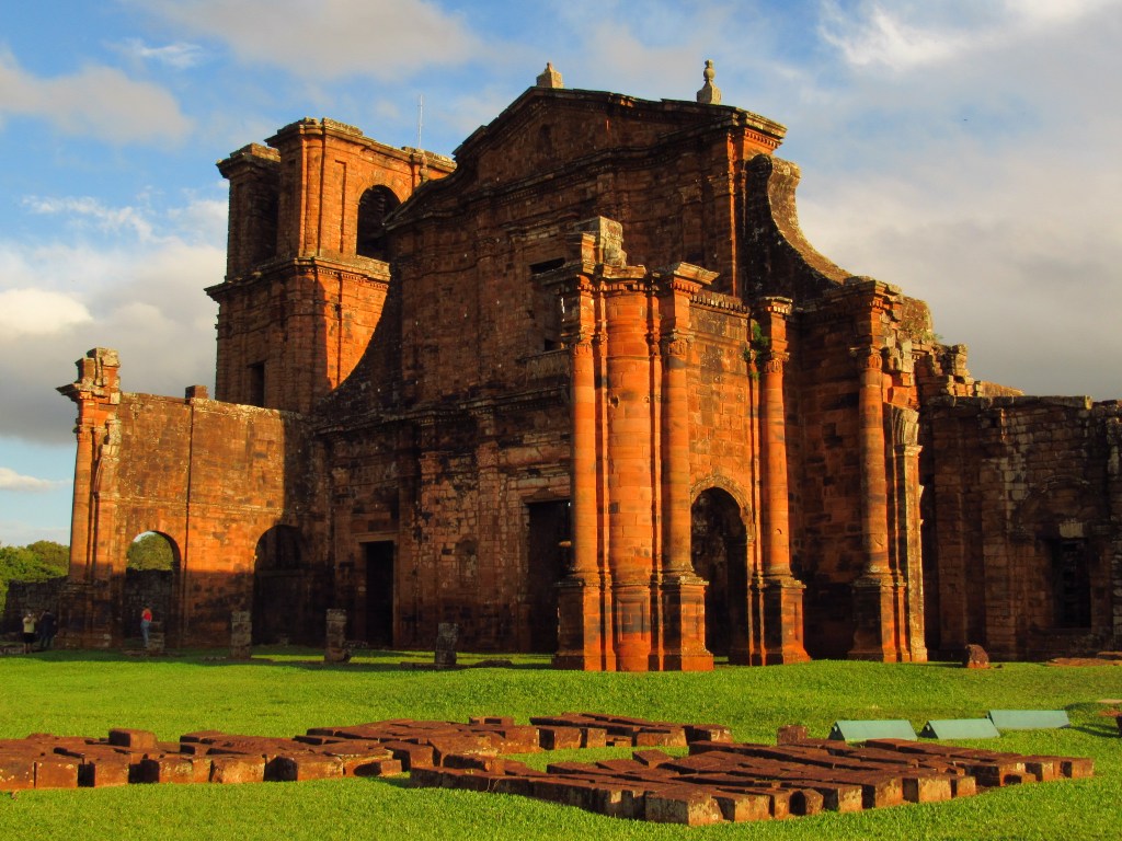 O sonho de uma sociedade organizada e próspera que parecia se desenhar na América do Sul do século XVII, sucumbiria ao tempo e a decisões de além-mar… As missões jesuíticas incluindo a de São Miguel foi uma experiência marcante como já comentamos por aqui, em uma tentativa de padres da Companhia de Jesus, de construir junto com índios Guaranis uma verdadeira nação em meio terras férteis, entre grandes rios do novo continente… Ao menos era o que começava a ser entendido pelos reis da península Ibérica, quando se juntaram para enfrentar esta associação, que ao menos no que se sabe foi construída de forma harmônica. Mas o motivo alegado para o embate que levou a chamada Guerra Guaranítica entre 1753 e 1756, foi a assinatura do Tratado de Madrid entre Portugal e Espanha em 1750. Por ele ficara decidido que a cidade fundada por portugueses em território espanhol (segundo o anterior tratado de Tordesilhas), chamada Colônia del Sacramento (hoje no Uruguai), deveria ser trocada pelos Sete Povos das Missões do lado leste do Rio Uruguai… A história destes povos, no entanto, começa 150 anos antes quando na primeira metade do século XVII, foram criadas comunidades que abrangiam boa parte do território de todo o Sul do que hoje é o Brasil, além dos vizinhos Argentina e Paraguai. E a intenção do governador da então província do Paraguai era através destas missões, chegar até o Atlântico. Inclusive até mesmo a região de Rio Pardo a menos de 200 km de Porto Alegre teria recebido uma das reduções desta primeira fase. Mas o desejo de bandeirantes em buscar índios para trabalhar de forma escravizada em canaviais do nordeste do Brasil, os fez saíram de São Paulo para avançar principalmente sobre estes projetos civilizatórios… Eles tiveram sucesso até sofrerem um primeiro revés na batalha de M’Bororé em 1641 nas terras hoje da Argentina, que os fez recuar. Ainda mais que o papa teria começado a condenar a escravização dos nativos sul americanos… Após estes primeiro momento, o projeto desta nova sociedade, voltou com força a partir de segunda metade do século XVII, período em que é fundada São Miguel Arcanjo em 1687. E assim como outros seis núcleos que hoje estão em solo gaúcho, São Miguel cresceu com moradias condominiais e atividades produtivas variadas, erguendo por fim uma imponente igreja em 1750, mesmo ano do tratado que mudaria sua sorte… E são estas ruínas que ainda resistem ao tempo, as principais testemunhas da prosperidade e da derrocada dessa sociedade que em parte não aceitou a ordem para que os padres fossem para o outro lado do rio… Disposto, junto com seus companheiros, a defender o que construíra, a lendária figura de Sepé Tiaraju ouve de portugueses que aquele solo agora pertenceria ao Rei de Portugal, ao que o líder indígena respondeu com a famosa frase “Esta terra já tem dono!” Sem acordo, a guerra foi a consequência com uma grande mortandade de índios, os grandes perdedores… Resistiriam as missões por mais alguns anos, para depois entraram em decadência definitiva, com os saques que se estenderam por parte do século XIX marcando o início de um período de abandono. Finalmente com a chegada do moderno século XX os novos povoadores da região, vislumbrassem a necessidade de se proteger este importante patrimônio e valorizar a sua incrível saga… Que fez com que este lugar passasse a ser a partir de 1983, um dos patrimônios da humanidade…