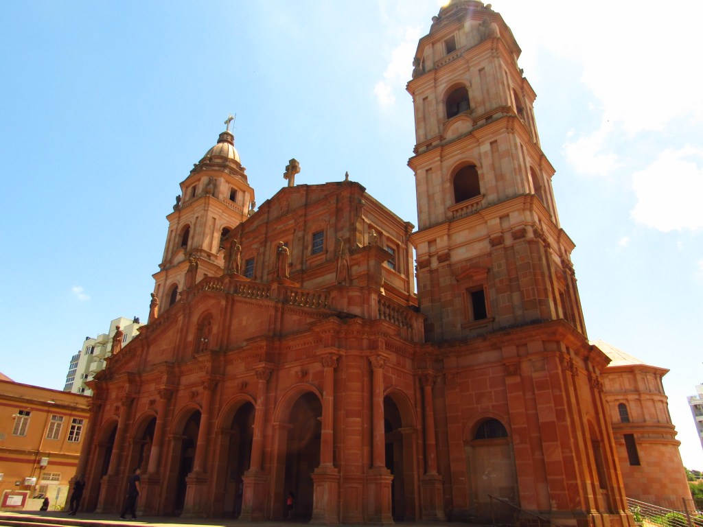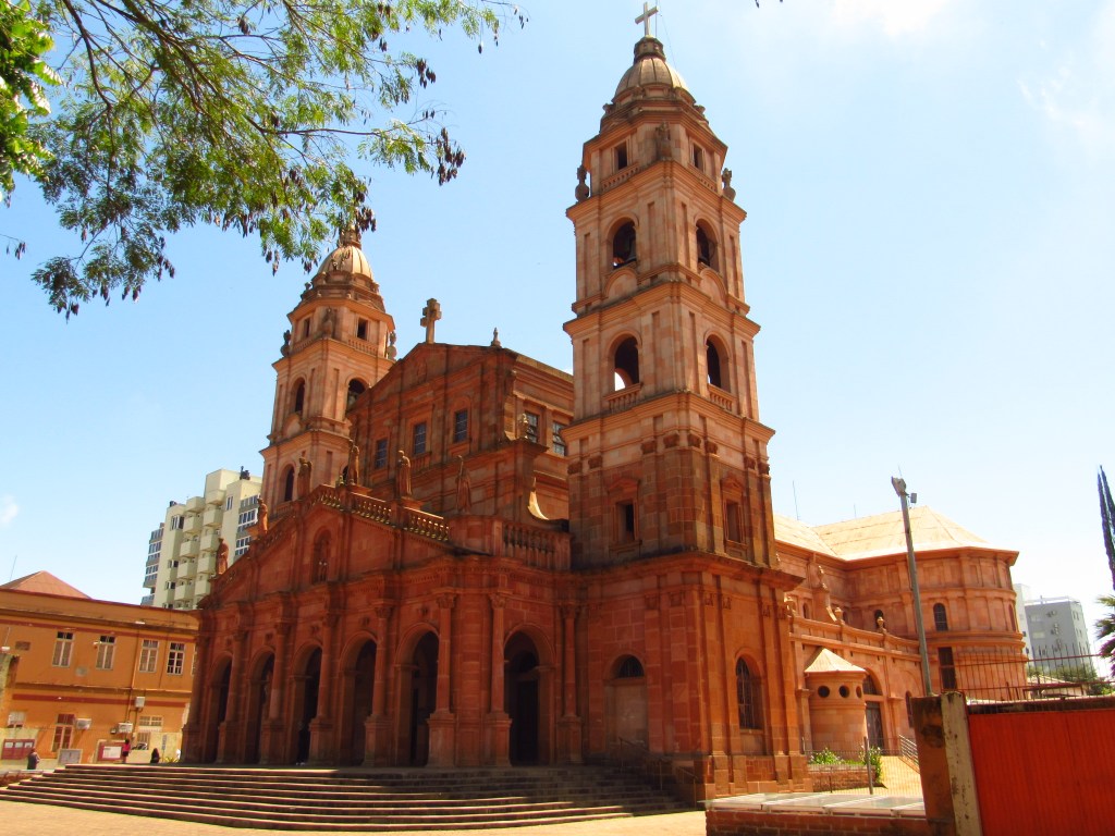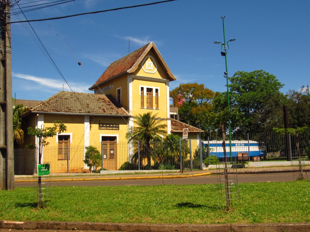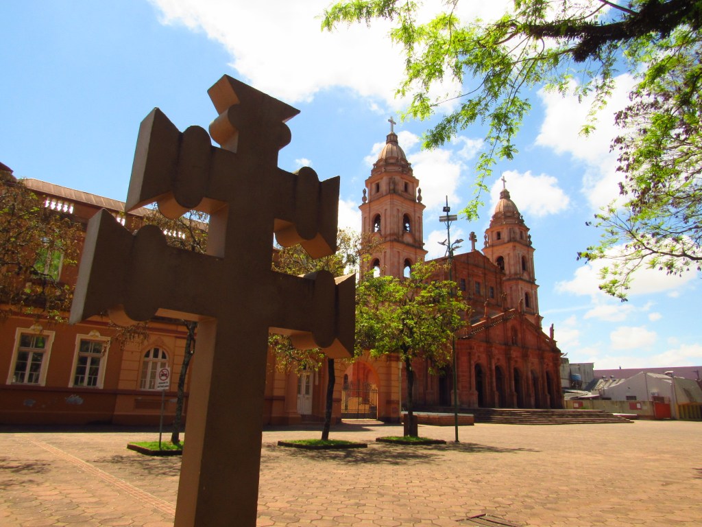 Uma das grandes cidades da região do planalto do Rio Grande do Sul, é também herdeira de um dos sete povos missioneiros, que fizeram história na América do Sul. Erguida a partir da missão de Santo Ângelo Custodio fundada pelo padre belga Diogo de Haze em 1706, a cidade ainda tem a religião católica como centro de seu patrimônio histórico. Afinal, a Catedral Angelopolitana em frente a praça Pinheiro Machado é o principal ícone da cidade, e sua arquitetura é inspirada no projeto da primeira capela erguida na redução. O projeto da Companhia de Jesus que visava catequisar índios, espalhou 30 comunidades no coração do continente americano entre os séculos XVII e XVIII, estabelecendo 7 delas onde hoje é solo gaúcho. Os trinta povos estão devidamente nomeados em pórticos enfileirados na praça, com o mais próximo da igreja fazendo referência ao que ali existiu, e último a ser fundado. Também próximo à praça, bastando atravessar a rua, se pode conhecer mais dessa história no Museu Municipal José Olavo Machado. Seu rico acervo, inclui uma maquete que mostra como era a urbanidade desta experiência civilizatória que já comentamos por aqui em conteúdo relacionado às ruínas de São Miguel. Ouros objetos também encantam por dar mostras da relevância deste projeto que mesclou arte sacra, com traços da cultura guarani. Mas é na catedral que a história parece pulsar, mesmo que o atual templo tenha sido o terceiro a ser erguido ali. Isto por que o primeiro assim com todo o projeto, foi atacado a partir da Guerra Guaranítica nos anos 1750, e posteriormente abandonado ao longo de décadas. Uma nova construção (inclusive de menor porte) que a substituiu ficou pronta em 1888 e finalmente esta terceira que resgata traços da original começou a ser edificada no século XX. E a sua história seguiu sendo contada em várias etapas por que só ficou parcialmente pronta nos anos 1950, e suas duas torres foram finalizadas somente em 1971… Nos anos 1990 novas referências a saga de padres e índios foram feitas, com polêmicas pinturas de nativos semi-nus vivendo com jesuítas, que muitas vezes eram tapadas em cerimônias religiosas… O desconforto de boa parte dos fiéis, foi finalmente encerrado com uma nova pintura, (após acordo com o artista), realizada na reforma de 2008… Também neste século em 2006, escavações trouxeram à tona novas descobertas de parte da antiga estrutura hoje expostas na lateral da igreja. Mas há outras histórias e lugares na cidade, com incríveis trajetórias de outros séculos. O museu que conta a saga de Luis Carlos Prestes e sua marcante caravana (ou coluna), realizada nos anos 1930 a partir da cidade, fica na antiga estação ferroviária da cidade. Mas neste 2021, quando por lá passamos estava fechado, ficando o convite para voltarmos e contar mais histórias desta joia da fantástica região missioneira…