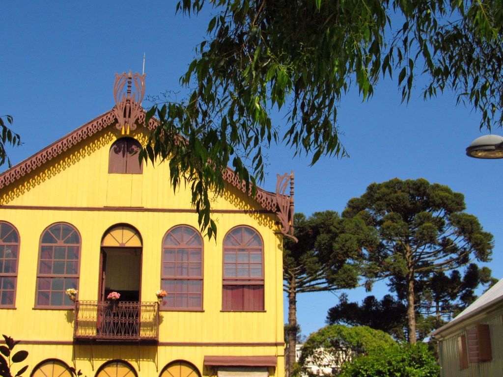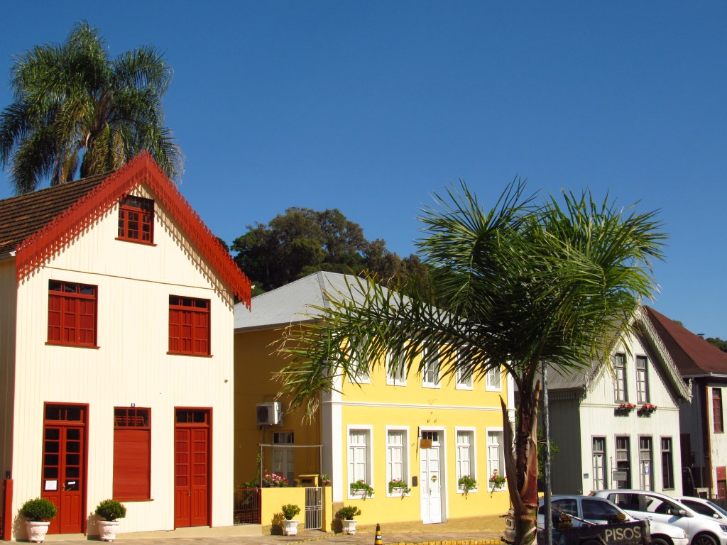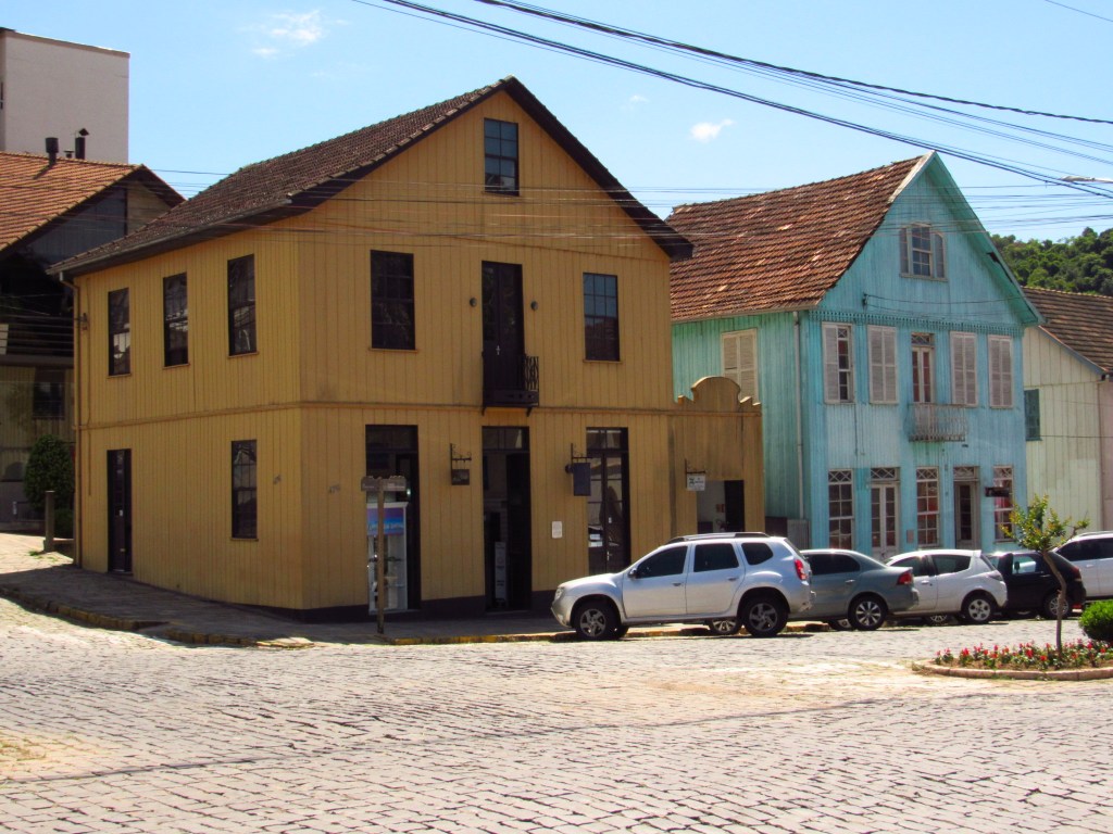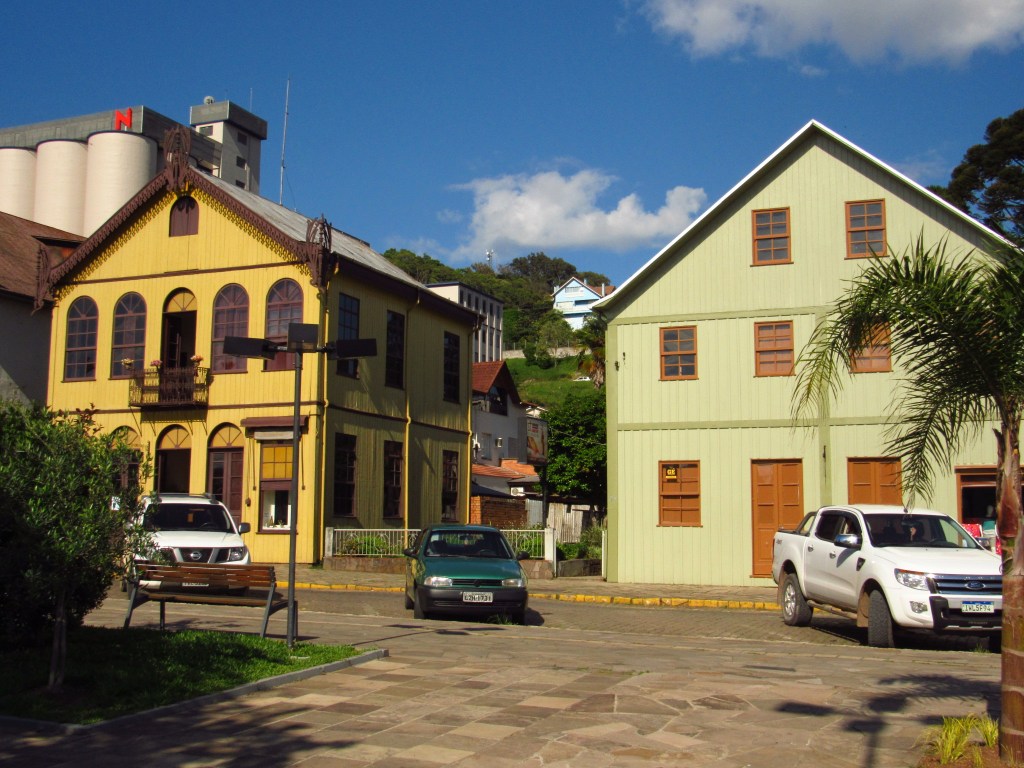 São 48 casas, a maioria de madeira com os tradicionais lambrequins a enfeitar suas beiradas, que se espalham em poucas quadras da serrana Antônio Prado. Bem preservadas, cada uma delas tem histórias, e mais histórias de vida e trabalho. Muito trabalho. Afinal, serviam muitas vezes não somente de moradia, mas também para o comércio e prestação de serviços, desde os primeiros anos da cidade fundada por imigrantes italianos. E esta trajetória ganhou corpo e força principalmente no final de século XIX e começo do XX, se estendendo de certa forma até hoje, pois ainda são ocupadas por empreendimentos comerciais. E é claro que todo este passado se valoriza ainda mais, pelas placas fixadas nas paredes de cada casa, que contém tocantes e saudosos depoimentos de descendentes destes pioneiros. Os relatos ali transcritos contam como eram os comércios, a recepção a viajantes onde havia um hotel, os encontros sociais onde chegou a funcionar uma espécie de cassino quando era permitido o jogo, e muito mais. As trocas de proprietários também estão registradas, com algumas marcas por eles deixadas, como a descrita por um descendente ao lembrar que sua avó dizia que havia comprado aquela casa, com o dinheiro de fritar pastéis… E há muitas outras histórias e muitos outros belos detalhes nesse maravilhoso conjunto urbano. Mas é na praça Garibaldi, onde um chafariz em seu centro compõe um belo cenário, que se pode apreciar com mais tranquilidade, uma parte importante deste patrimônio. E isto inclui a sede da antiga intendência e atual prefeitura, e uma das sedes do antigo Banco Pelotense, em um dos lados e a destacada Casa da Neni, do outro. Esta, além de também possuir a sua própria história, abriga o acervo do Centro Cultural Padre Schio com um museu repleto de objetos antigos e muita informação…  Assunto que, junto com a história religiosa centralizada pela Igreja Sagrado Coração de Jesus, será tratado em outros conteúdos. Pois há muito mais para mostrar deste lugar emblemático, da região de imigração italiana na Serra Gaúcha…