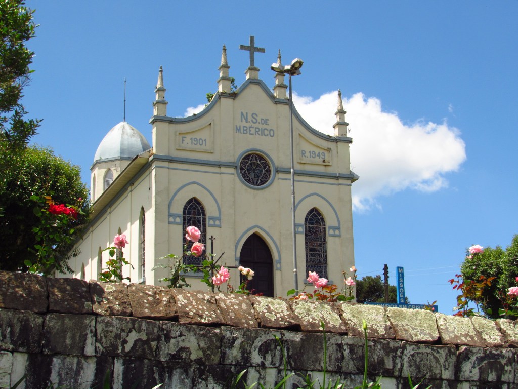 Paisagens impressionantes que podem ser visualizadas de mirantes em cima de morros, são frequentes na serra gaúcha. Mas há também formações únicas, como cavernas encravadas nestes aclives, que muito serviram de abrigo a quem já vagava por aqui em tempos mais remotos… Em Veranópolis há uma das maiores aqui do sul com seus incríveis 67 metros de comprimento e 28 de largura, que deve ter servido de moradia para índios caigangues que subiam e desciam estes morros íngremes… O acesso hoje foi facilitado com escadas para se chegar até a entrada do lugar, além da colocação de iluminação que permite apreciar a curiosa formação rochosa. Uma vista do vale ao sair dela completa o passeio, que convida a refletir sobre a vida destes antepassados mais distantes… E há mais a ser visitado por ali, como o esplendoroso Belvedere do Espigão de onde se vislumbra uma curva do Rio das Antas que corre mansamente lá embaixo. Ao lado de um cemitério de vagões de trem, que já mostramos não faz muito, por aqui… Veranópolis é considerada a terra da longevidade, mas também a capital da maçã, possuindo inclusive um roteiro para apreciar a fruta. Não conseguimos percorrer todo este trajeto no meio rural, se detendo apenas na singela capela de Monte Bérico construída em 1901. Assim como outras da serra, ela faz homenagem a um santuário em um monte com este nome, localizado na cidade italiana de Vicenza. Também neste dia foi difícil acessar belas cascatas da cidade, como a dos três monges, que já mostramos em conteúdos mais antigos. Mas conseguimos pegar belas imagens da sua zona urbana, do alto do pitoresco restaurante giratório… Este núcleo central com mais igrejas, e um interessante centro de cultura, foi visitado neste mesmo dia e ainda será mostrado em mais detalhes por aqui…