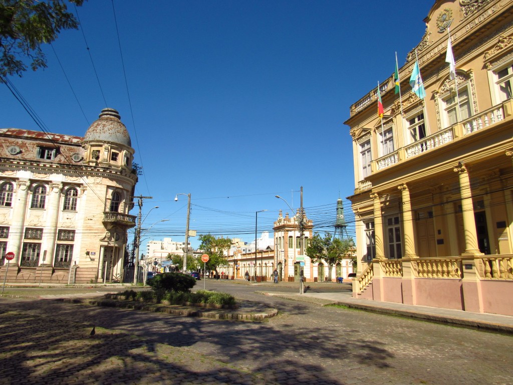 No coração da cidade gaúcha de Pelotas, um conjunto de imponentes prédios centenários, convidam a uma atenta apreciação de suas belas linhas e marcante história. E não tem com não se impactar com o icônico Mercado Central, um dos símbolos da cidade que segue vivo e pujante. Erguido após o término da Revolução Farroupilha em 1846 concentrava não só o comércio, mas também variadas apresentações artísticas em seus primeiros anos, sendo ponto de encontro de gentes de todas as classes. Na reforma de 1912 a 1914, teve acrescida uma torre metálica construída na Alemanha inspirada na Torre Eiffel de Paris… Revitalizado há poucos anos hoje é um ponto de comércio e gastronomia que atende a população e turistas, que se deliciam com os tradicionais e famosos doces da cidade. Ele está rodeado de outros antigos prédios, alguns ainda carecendo de uma revitalização como a antiga sede do Banco do Brasil, mas outros como a Prefeitura e a Biblioteca Pública estão como novos. E a Biblioteca Pública é um verdadeiro mergulho no passado, tanto para os que a admiram por fora, quanto aos que percorrem os seus ambientes… Com salões repletos de sofisticados detalhes arquitetônicos que incluem pinturas de motivos campestres nas paredes, o espaço inspira a leitura de algumas de suas obras disponíveis gratuitamente à comunidade. Um museu em seu sobsolo, fechado em tempos de pandemia, e um salão no andar superior para a realização de eventos são outros ambientes desta magnífica construção. No entorno da praça central, que pode ser vislumbrada com amplitude dos balcões desta Biblioteca, há mais prédios históricos que já mostramos em outros conteúdos… E em outras regiões da cidade também se encontram importantes exemplares, ficando até difícil de organizar toda esta informação. Além de se ter sempre aquela vontade de voltar para mostrar mais detalhes. Como é o caso da Catedral Anglicana do Redentor popularmente conhecida como “igreja cabeluda”, um curioso templo católico rodeado de heras que preenchem suas paredes externas, e que fica a poucos metros do mercado. No dia que lá estivemos estava fechada, mas certamente possui outros detalhes tão ou mais marcantes que sua fachada diferente… Que sempre rende belas imagens a quem tem, como nós, um olhar carinhoso com o nosso belo patrimônio histórico!