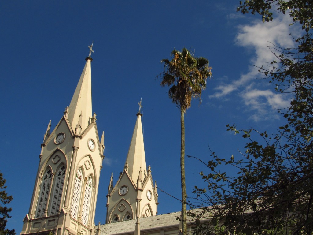 Esta cidade de origem italiana na Serra Gaúcha é conhecida como a terra da longevidade, por sua elevada expectativa de vida, além de ser uma relevante produtora de maçãs. E é no seu núcleo urbano principal que se encontra um patrimônio histórico rico, com histórias comunitárias muito interessantes. A fé, como aconteceu em várias cidades desta região, acabou por centralizar as aspirações das pessoas, ao menos na trajetória do século passado, e sua bela matriz é um exemplo disso. Erguida em homenagem a São Luiz Gonzaga demorou longos 23 anos para ficar pronta em 1933, substituindo a capela inicial de 1888. Se diz que para enfrentar as dificuldades financeiras da sua construção, até mesmo doação de porcos gordos foi realizada, e com sucesso. Mas a religiosidade não para por aí. A poucas quadras dali um outro templo católico, este reverenciando Nossa Senhora de Lourdes, possui uma curiosidade que nos parece ser única no sul. Ela foi concebida para complementar uma gruta existente ali, há mais de cem anos onde ocorre uma procissão anual em fevereiro. A estrutura com pedra natural, corresponde hoje a parede atrás do altar de uma igreja de médio porte, mas com características básicas deste tipo de edificação do século XX, com belos vitrais e torres em seu exterior. A conjunção de paredes lisas com as pedras, e a iluminação do sol da tarde a partir da porta de entrada, constituem em cenário inspirador para as preces dos fiéis… Em meio a estes dois ícones religiosos, não se pode deixar de visitar também, a Casa de Cultura Frei Rovílio Costa em fase de revitalização. O prédio em frente a matriz, possui um estilo Art Deco característico dos anos 1930 por um interessante motivo. Ele foi sede durante os primeiros anos do século XX, da Societtá Principe de Piemonti resultante da fusão de duas outras sociedades fundadas por imigrantes italianos. Mas com o advento do Estado Novo no Brasil em 1937, seu nome teve que ser alterado para Sociedade Alfredo Chaves em um processo de nacionalização imposto pelo governo brasileiro. E as linhas arquitetônicas da sua fachada foram modificadas junto com o nome, dando origem ao então moderno estilo, que passava a vigorar com força simbolizando os novos tempos… Dentro do prédio como resultado do interesse cultural que também fazia parte do clube, foi erguido um belo teatro para variados fins, restaurado completamente em 2020. Que manteve suas belas linhas originais, mas que o dotou de estruturas adequadas a receber novos espetáculos e reuniões sociais. O museu municipal que ocupará em futuro próximo outras salas do prédio, está em fase de reestruturação, o que deixará completo este importante centro de divulgação e fomento à cultura… A cidade ainda possui uma bela zona rural com mais demonstrações de fé, além de belas paisagens e atrativos naturais igualmente impactantes. Destacam-se cascatas, mirantes com vistas para o Rio das Antas e até mesmo uma singular caverna indígena, que já mostramos em outros conteúdos. Lugares estes, que convidam o visitante a voltar muitas outras vezes…
