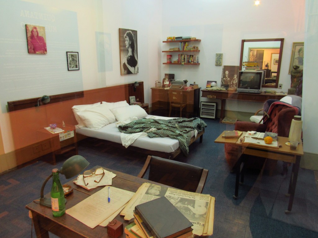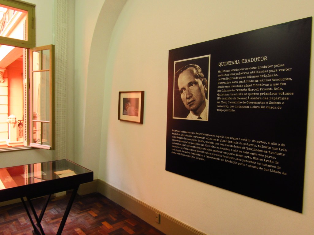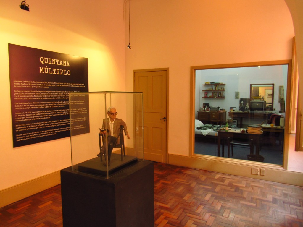 Mas o poeta também tem o seu lugar na casa… Literalmente! Afinal, Mário Quintana de vida mais longeva e sempre solteira, morou entre 1968 e 1980 ali mesmo, quando o Hotel Majestic seguia em seus últimos anos de existência. E o seu quarto foi preservado tal como ele era durante o período em que ele seguia com seus poemas além de escrever uma coluna para um jornal local. Sua vida mais longeva que percorreu quase a totalidade do século XX, também é retratada em exposição anexa, mostrando inclusive que ele foi um tradutor de famosas obras literárias…