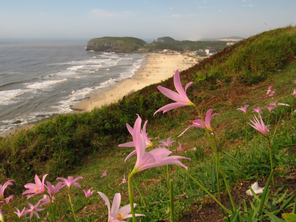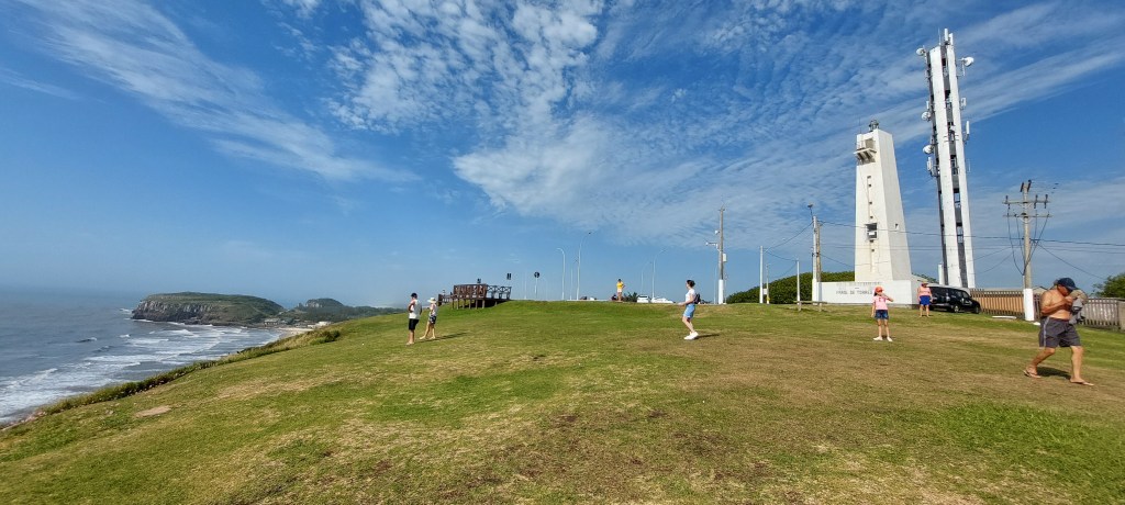 Importado da França ele veio puxado por junta de bois, desde Laguna no estado vizinho, e foi erguido para indicar a divisa do nosso Rio Grande do Sul com Santa Catarina. Os molhes, do encontro do Rio Mampituba que divide os dois estados sulinos com o oceano, pode inclusive ser avistado lá do alto, junto com a visão da praia e de boa parte da cidade. E ao se olhar na direção sul, ainda se enxerga outros morros que formam o Parque da Guarita, com suas belas formações rochosas, além de mais praias e imensas dunas ao fundo mais a oeste…