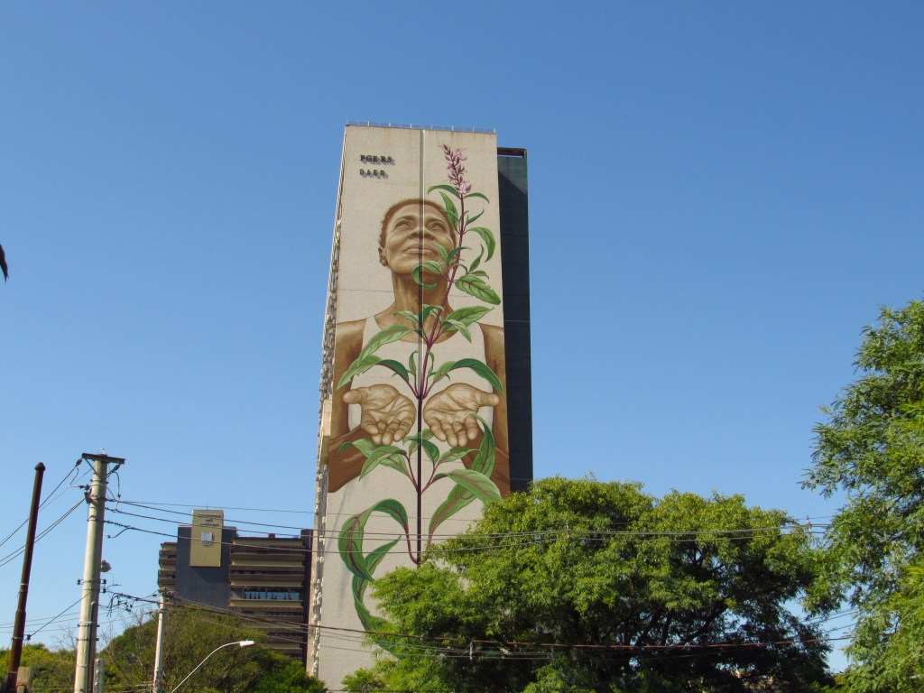 Com o passar dos anos, porém mais moradores foram chegando incluindo-se policiais do quartel que ali se instalou, e outras pessoas com mais posses, principalmente depois da retificação do arroio dilúvio. A comunidade de descendentes de africanos, no entanto permaneceu forte por ali resultando na formação do que se conhece hoje por um dos únicos quilombos urbanos do Brasil. A Avenida Luiz Guaranha, que na realidade é uma pequena via sem saída a partir da Rua Baronesa de Gravataí quase esquina com a Barão de Gravataí, marca por meio de características construções antigas esta trajetória histórica. Igualmente o Pão dos Pobres é uma referência por ali principalmente por suas igrejas. Tanto a antiga na sede do instituto como a nova erguida nos anos 1950, que ajudaram a moldar o que hoje é uma parte do bairro Cidade Baixa. E recentemente, mais precisamente neste janeiro de 2022, uma pintura gigantesca passou a marcar a fachada lateral do prédio do DAER em frente à igreja, com esta lado “olhando” para a Ponte de Pedra. A obra de arte monumental marca uma espécie de resistência de um povo, ao retratar uma mulher negra amparando uma planta conhecida por quebra-tudo, largamente utilizada em celebrações de religiões de matriz africana. Uma maneira de evidenciar a presença e a importância dos que vieram do continente africano na construção da cidade e do país. Que mesmo que de forma escravizada ajudaram, junto com açorianos e outras gentes, a erguer esta cidade que completa neste março, 250 anos de uma trajetória complexa, mas rica em experiências e vivências….