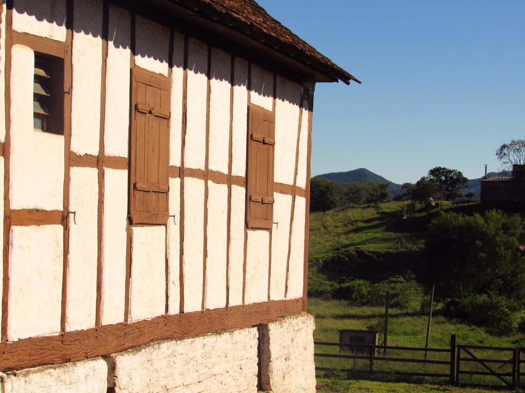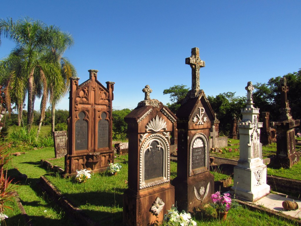 E as casas erguidas na técnica enxaimel, como sempre, se destacam em meio outras belas residências antigas, em sua maioria bem conservadas… Mas é no Cemitério Evangélico que vale a pena fazer uma parada para apreciar a bela arte cemiterial. Seus jazigos em volta de um gramado com vista para o vale, possuem interessantes ornamentos, com a devida explicação feitos por placas que valorizam estes detalhes. As inscrições em alemão esclarecem o fato de que muitos que ali descansam, falavam somente este idioma, mesmo depois de alguns anos da chegada dos primeiros imigrantes.