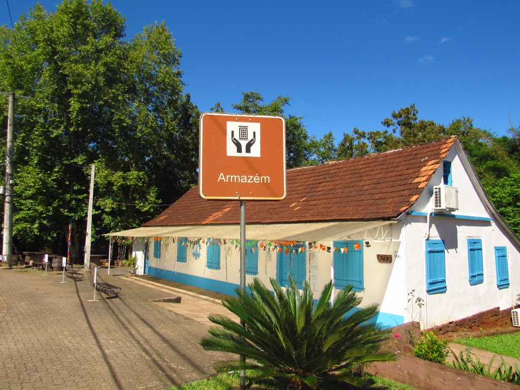Entre as várias construções um armazém típico, daqueles que vendiam de tudo e centralizavam essas comunidades em outros tempos, está totalmente revitalizado. Hoje utilizada por um empreendimento gastronômico, estava no mês de março enfeitado para a celebração de uma tradicional festa da Irlanda… A celebração a um santo deste país, ganhou força nos últimos por aqui, incluindo o consumo de bebidas verdes, e a tradição germânica parece ter cedido espaço a esta outra cultura europeia…