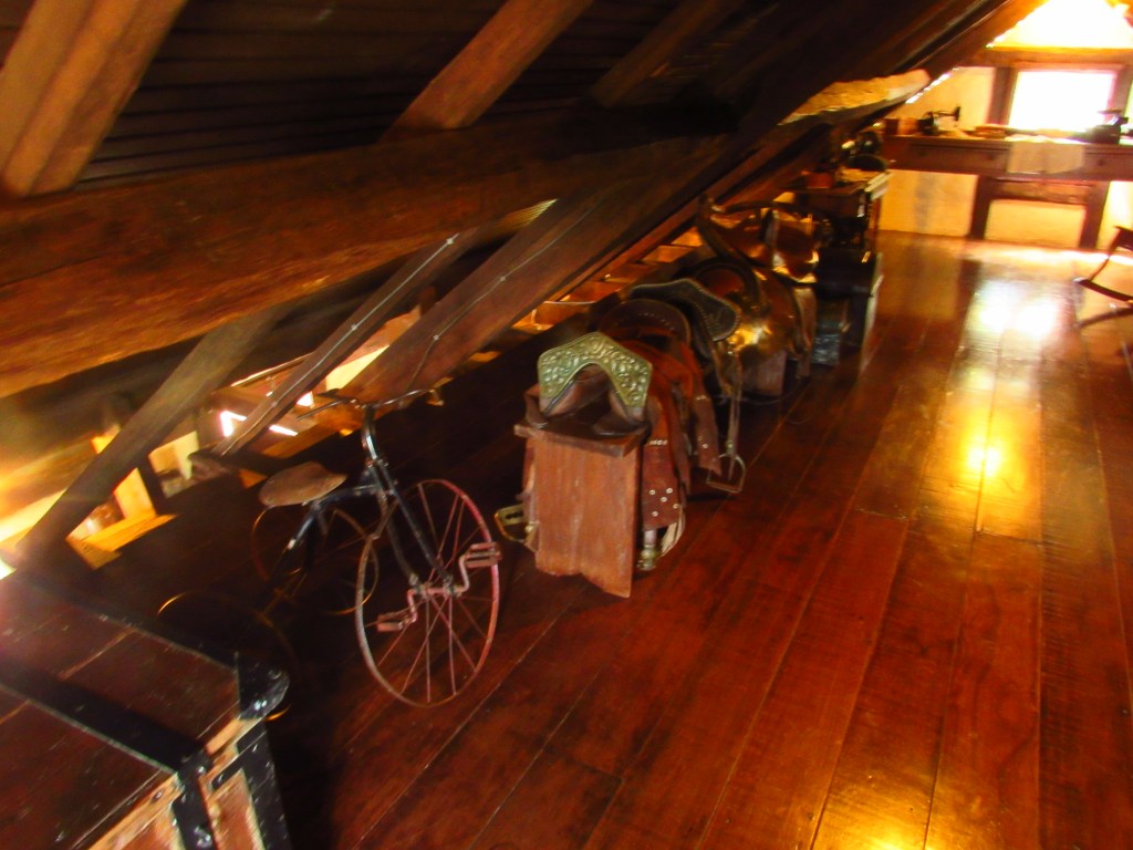Há ainda mais objetos no sótão que incluem malas trazidas pelos imigrantes e máquinas de costura que fizeram parte do embrião da indústria calçadista da região. Além de servirem para habilidosas costureiras, confeccionarem a moda das gentes que começavam a prosperar… E no lado externo do prédio ainda se pode apreciar um forno para pães e uma moenda para moer mandioca e cana-de-açucar, mostrando um pouco mais deste ambiente pré-industrial.