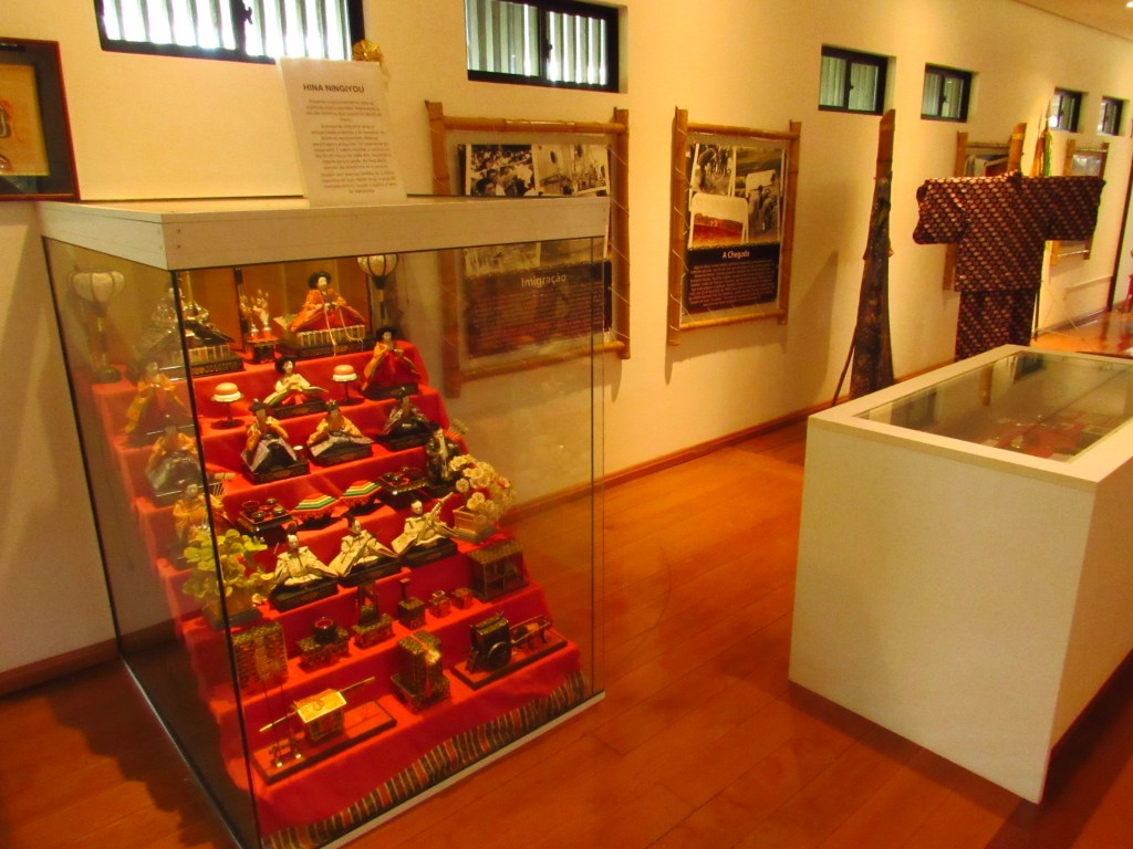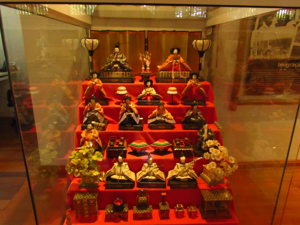 Mas é logo na entrada que um conjunto de bonecas elaboradas de forma caprichosa, surpreende ao compor um cenário que reproduz o casamento do imperador. Esta montagem é realizada tradicionalmente no dia 3 de março quando se celebra o dia das meninas no Japão, data em que elas são presenteadas com este tradicional brinquedo. Este conjunto de pequenos personagens com suas coloridas roupas e interessantes expressões, invariavelmente despertam a curiosidade de crianças de todas as idades… E junto com outras peças do acervo, parecem fazer um convite a uma viajem longa, para uma terra distante. Que fica do outro lado do mundo…