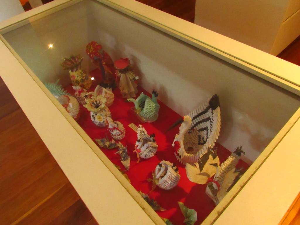 Muito do que foi trazido na bagagem, ou mesmo o que talvez tenha ficado por lá, é mostrado nesta verdadeira embaixada cultural. Coloridos quimonos, uma vestimenta tradicional, dividem espaço com igualmente belos origamis, as delicadas dobraduras artísticas de papel. Outro espaço mostra objetos relacionados à esportes que apaixonam os japoneses como o baseball, e um outro mostra documentos dos primeiros colonizadores da região. Painéis com fotos de belas paisagens da província de Shiga, irmã dos gaúchos, formam um canto colorido do espaço. E uma réplica de um navio afundado por americanos com 25 torpedos na segunda guerra mundial, faz lembrar o sofrimento desta gente neste triste capítulo da história recente mundial…