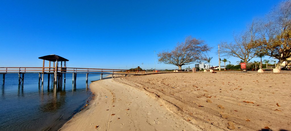 Longe das ondas do mar, mas com uma larga faixa de areia, a Praia do Laranjal não só é um bairro de Pelotas, como fica a poucos quilômetros do centro da cidade. E é pra lá que muitos vão no verão, tomar um banho nas águas calmas da Lago dos Patos.