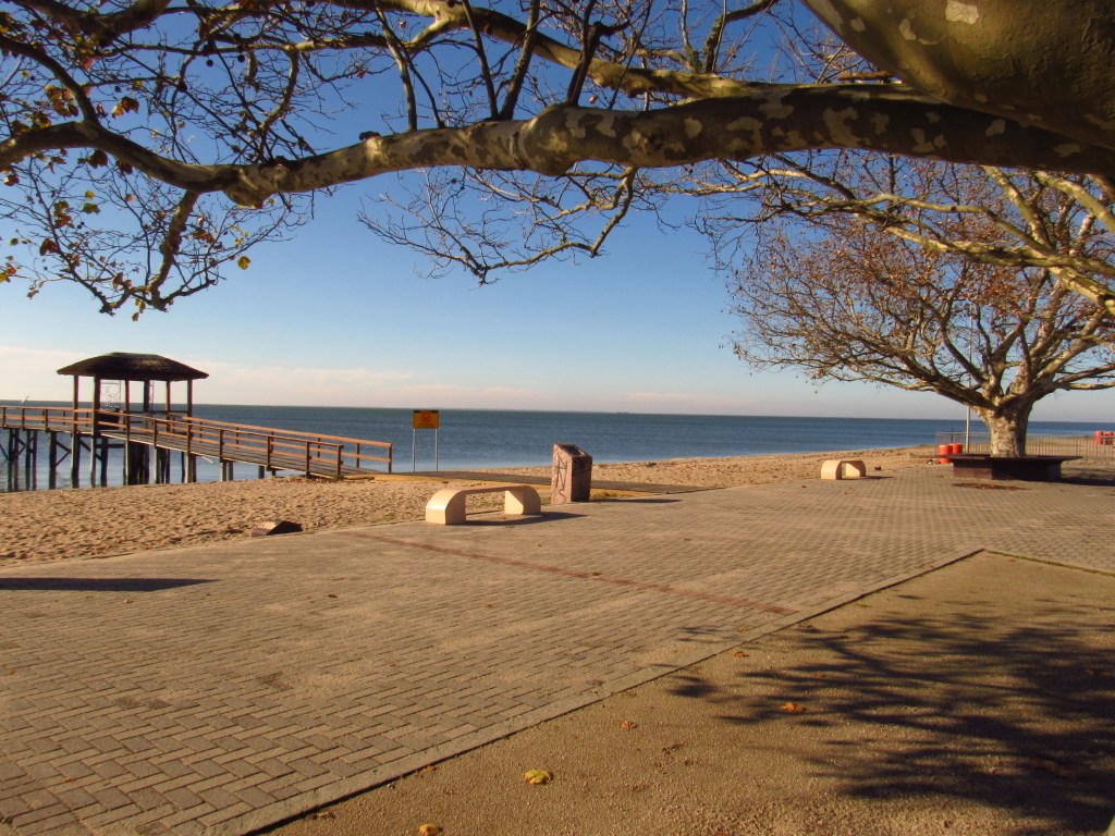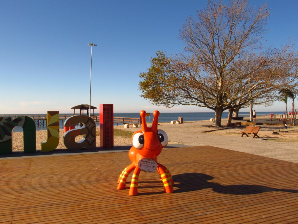 A paisagem da beira da água ainda é acompanhada por várias espécies de árvores, que incluem simbólicas figueiras e charmosos plátanos, estes deixando cair suas amarronzadas folhas, nesta manhã de final de junho. O lugar recebeu melhorias recentes além do novo trapiche com seu portão de belas linhas. Um letreiro com o nome do lugar empresta cores variadas a paisagem, recebendo muitas fotos para enfeitarem nossas redes… No detalhe, cada letra possui um mosaico inspirado na arte e arquitetura de uma cidade com um patrimônio histórico riquíssimo. Ao lado deste nome marcante uma simpática formiguinha gigante de plástico, convidava para a Festa do Doce que acabara há poucos dias. Mas que voltará no próximo ano, como sempre…