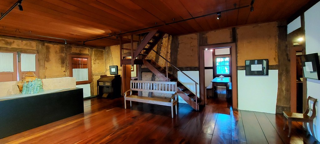 E a longa trajetória do lugar seguiu depois de algumas ocupações diferentes, agora nas mãos de Edvino Presser, marido de uma neta do pioneiro Schmitt. Alguns mais velhos devem ainda ter frequentado o velho armazém, que acabou por fechar nos anos 1970, quando começa a vontade de preservá-lo. Muito incentivada pelo importante artista Ernesto Frdeerico Scheffel (do qual já falamos em outro conteúdo) esta preservação, a recuperação e um museu vieram na final do século passado. Nele, a venda é reproduzida como era no princípio, na parte de baixo da casa, deixando os andares superiores para mostrar como era a residência da família…
