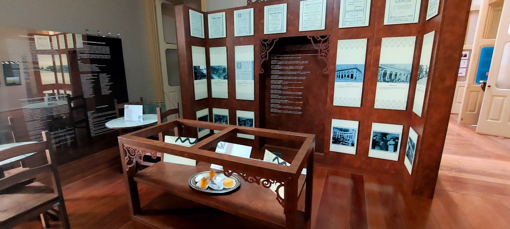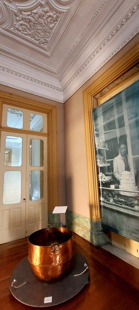 A história mostrada neste interessantíssimo museu, começa com receitas de origem portuguesa, incrementadas com influências africanas dos escravizados. Os doces onde imperam ovos, leite, farinha e muitas vezes o coco, eram iguarias oferecidas nas reuniões sociais, como as que deveria ocorrer ali mesmo no casarão. Amostras destes doces estão ali expostas como também, belos pelotins, papéis picotados a mão, para enfeitar quindins e fios de ovos… A apreciação cresceu com o tempo e a oportunidade de negócio surgiu, com a implantação de grandes confeitarias na cidade, em ambientes para mais pessoas se encontrarem e se deliciarem.